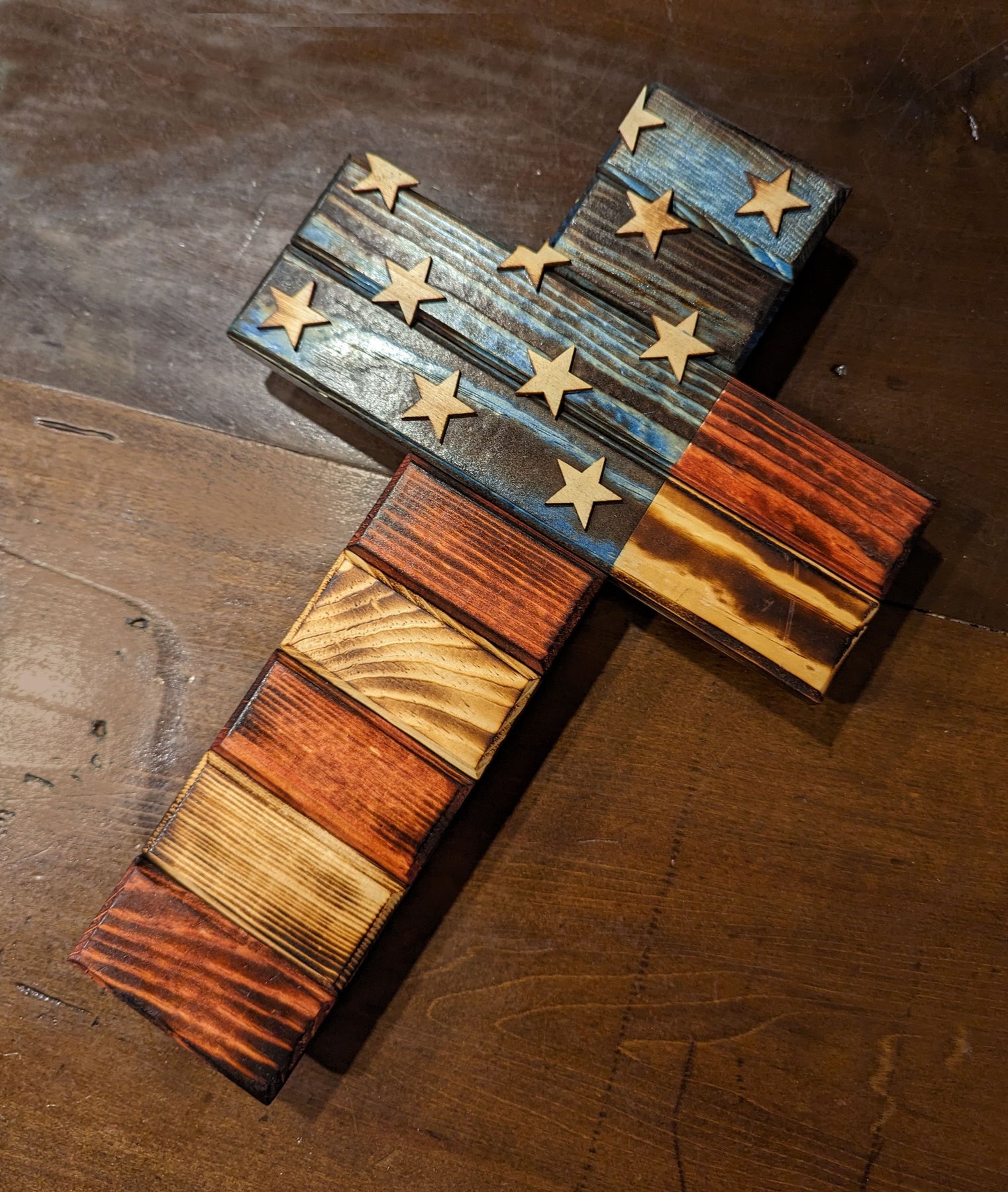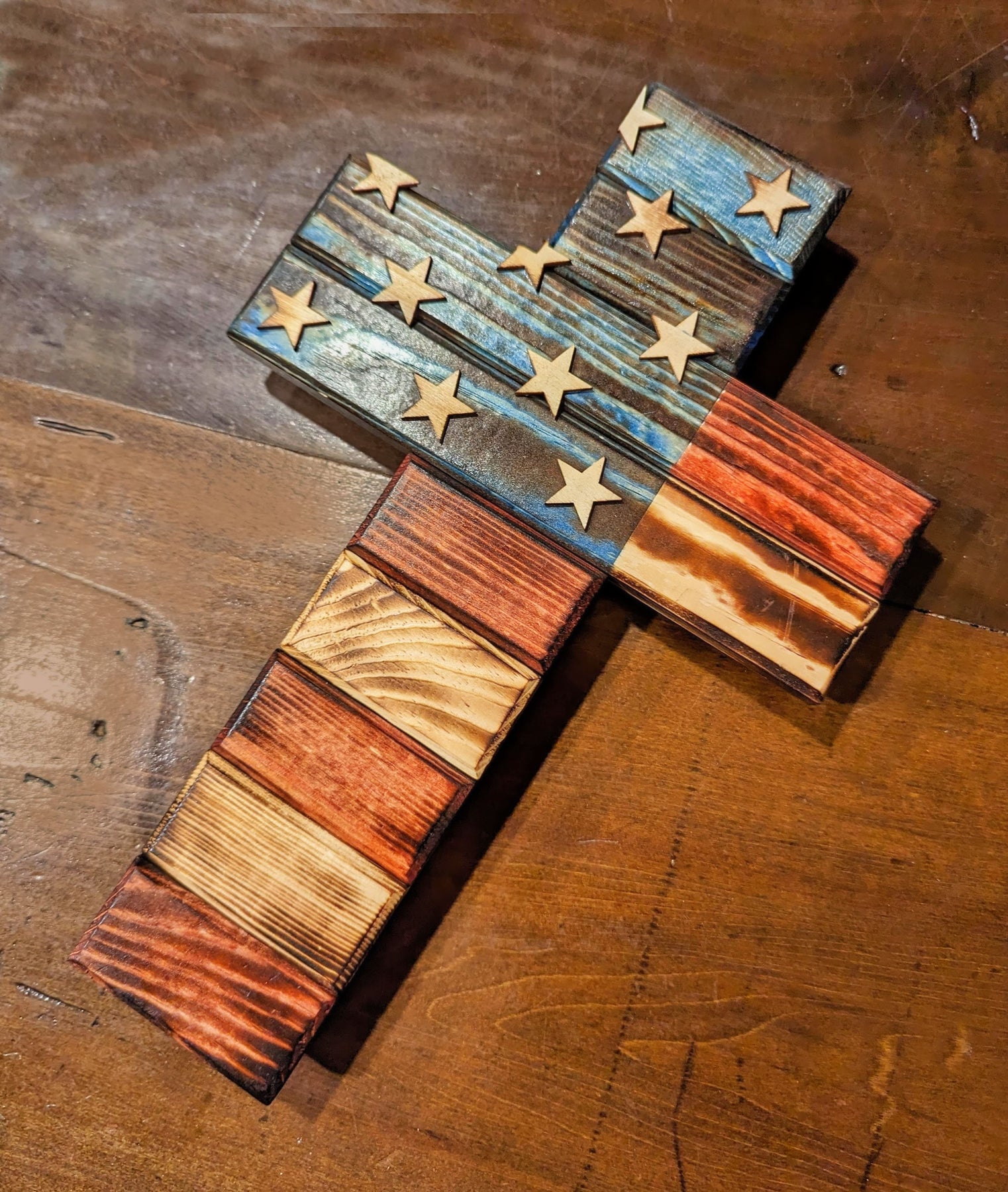 This American Cross Plaque is Hand made by a father and son small, US business.