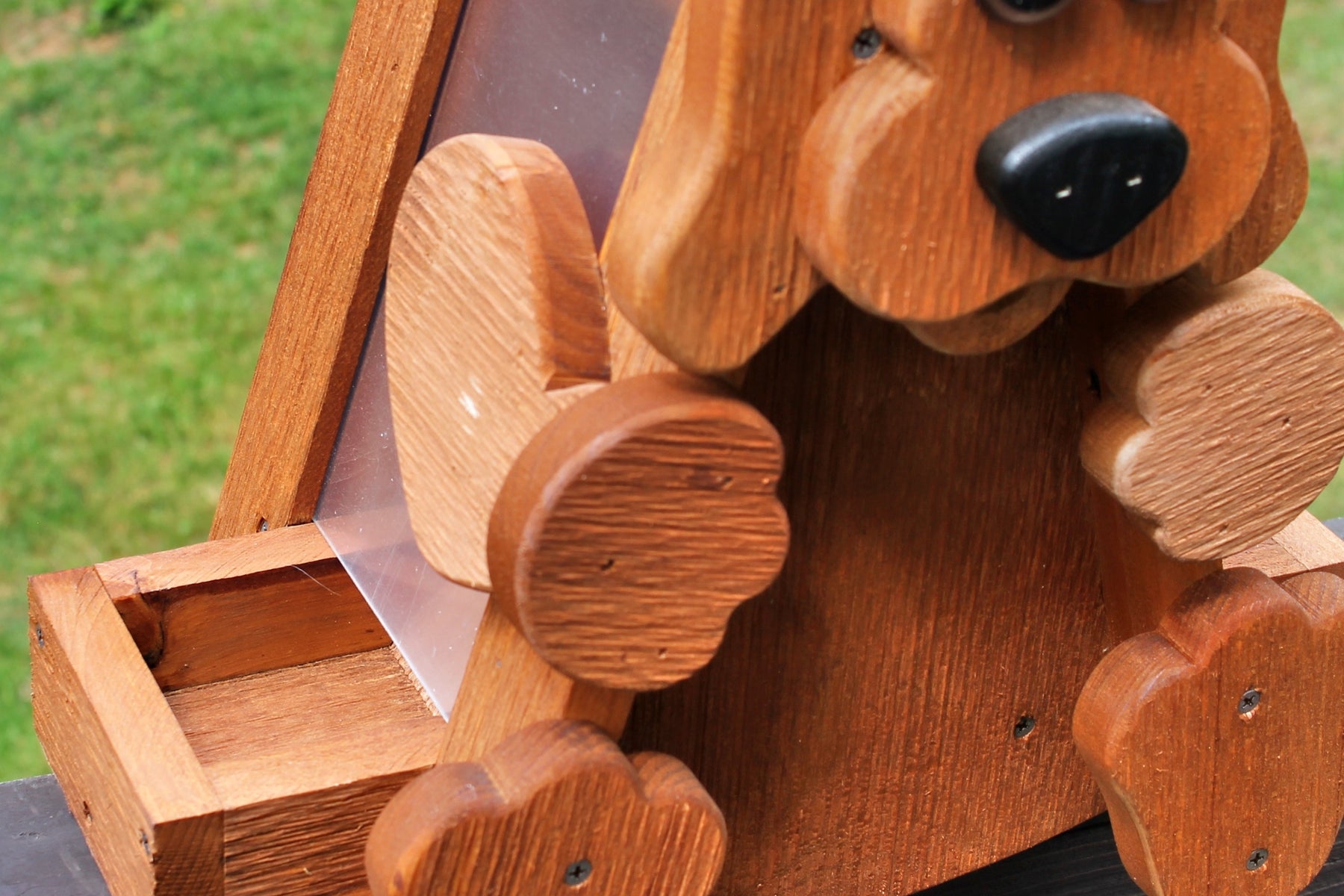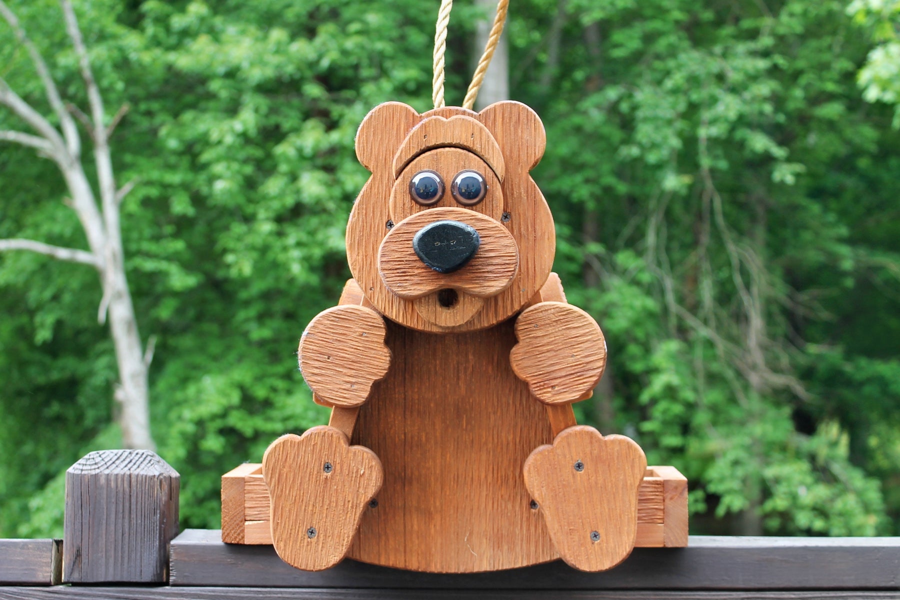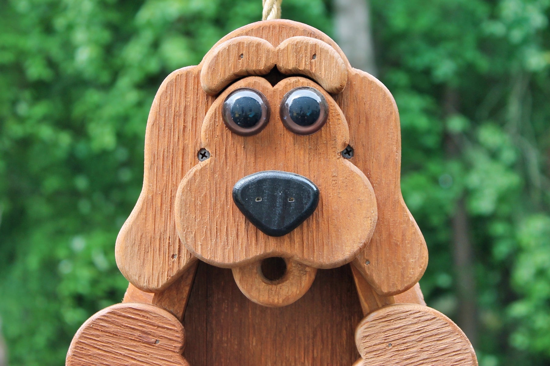 These expertly crafted large bird feeders, shaped as adorable dogs or bears, are the perfect addition to your yard. These feeders are made in America with great care. They will enhance your outdoor area and provide bird seed for the birds throughout the year.