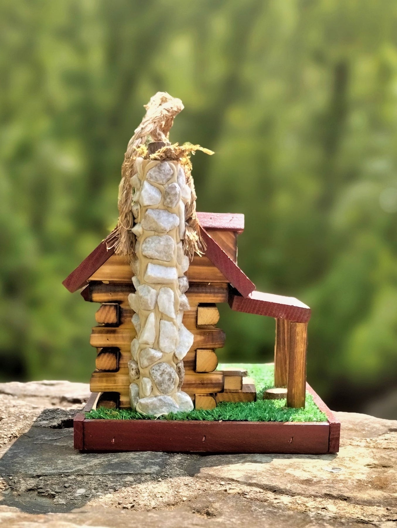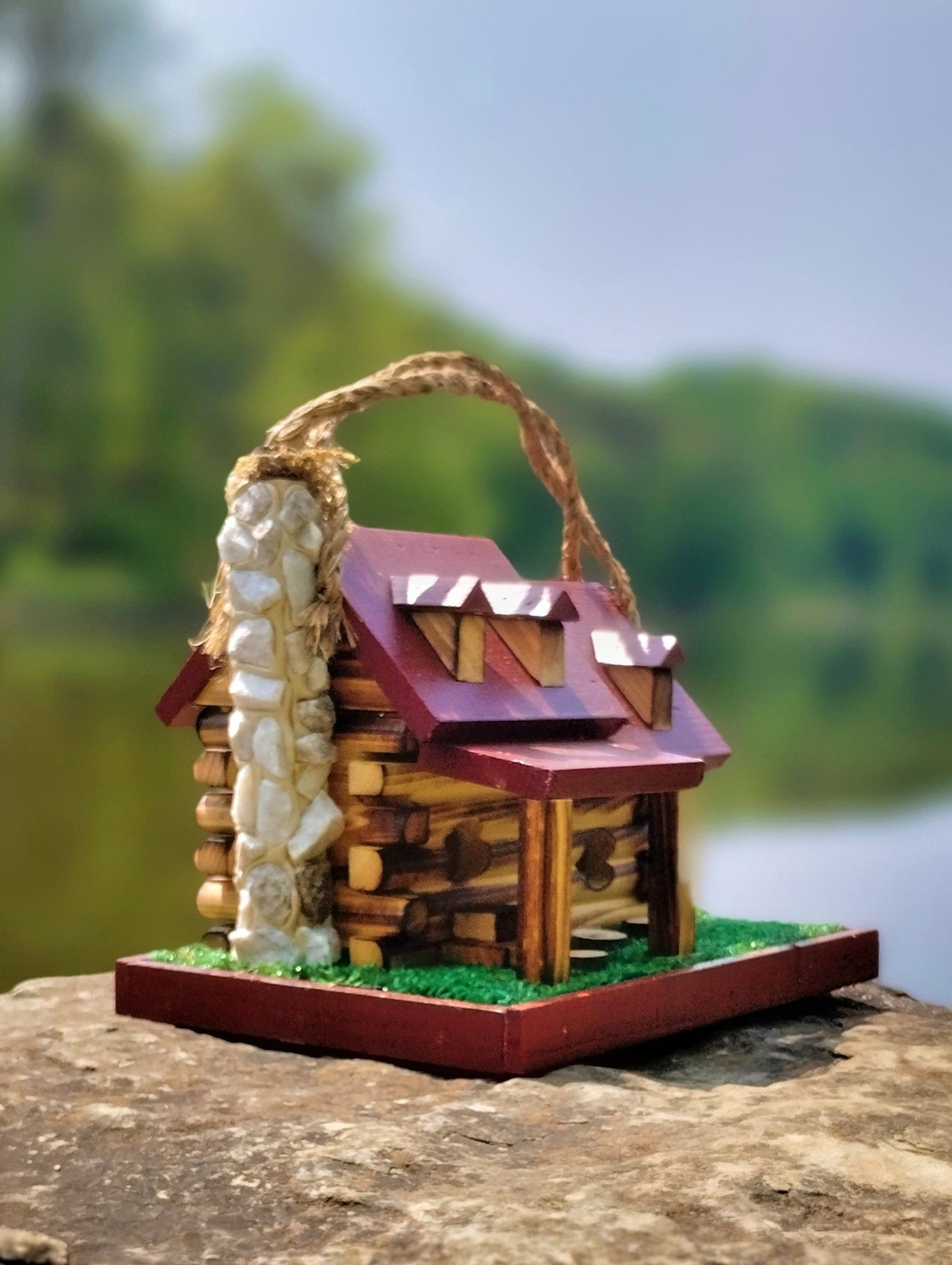 Add a unique birdhouse to your outdoor decor with this exquisite Amish Made Log Cabin Birdhouse. Designed to resemble a cozy two-room log cabin, complete unique birdhouse with a chimney and windows. The ideal wood cabin birdhouse to enhance your birdhouse decorations.