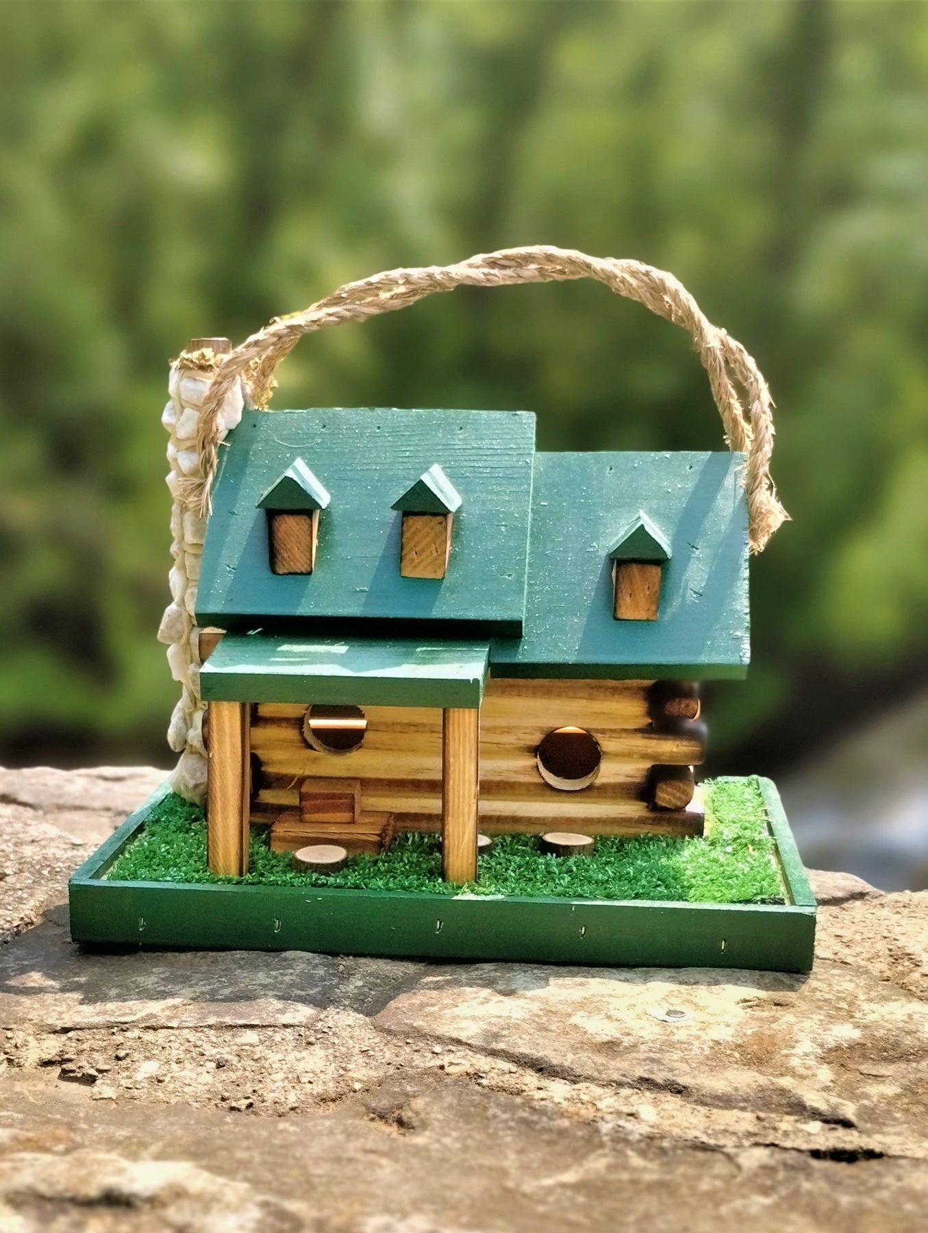 Enjoy hours of birdwatching as birds flock to these birdhouses. This cabin bird house product has a size of 8.5 inches wide, 12 inches long, and 8 inches high - perfect for any yard. Choose from four beautiful colors: Red, Green, Black, or Blue. Proudly made in America with free shipping, make these birdhouses for outdoors a lovely addition to your yard. (Delivery available only within USA, excluding Alaska and Hawaii)