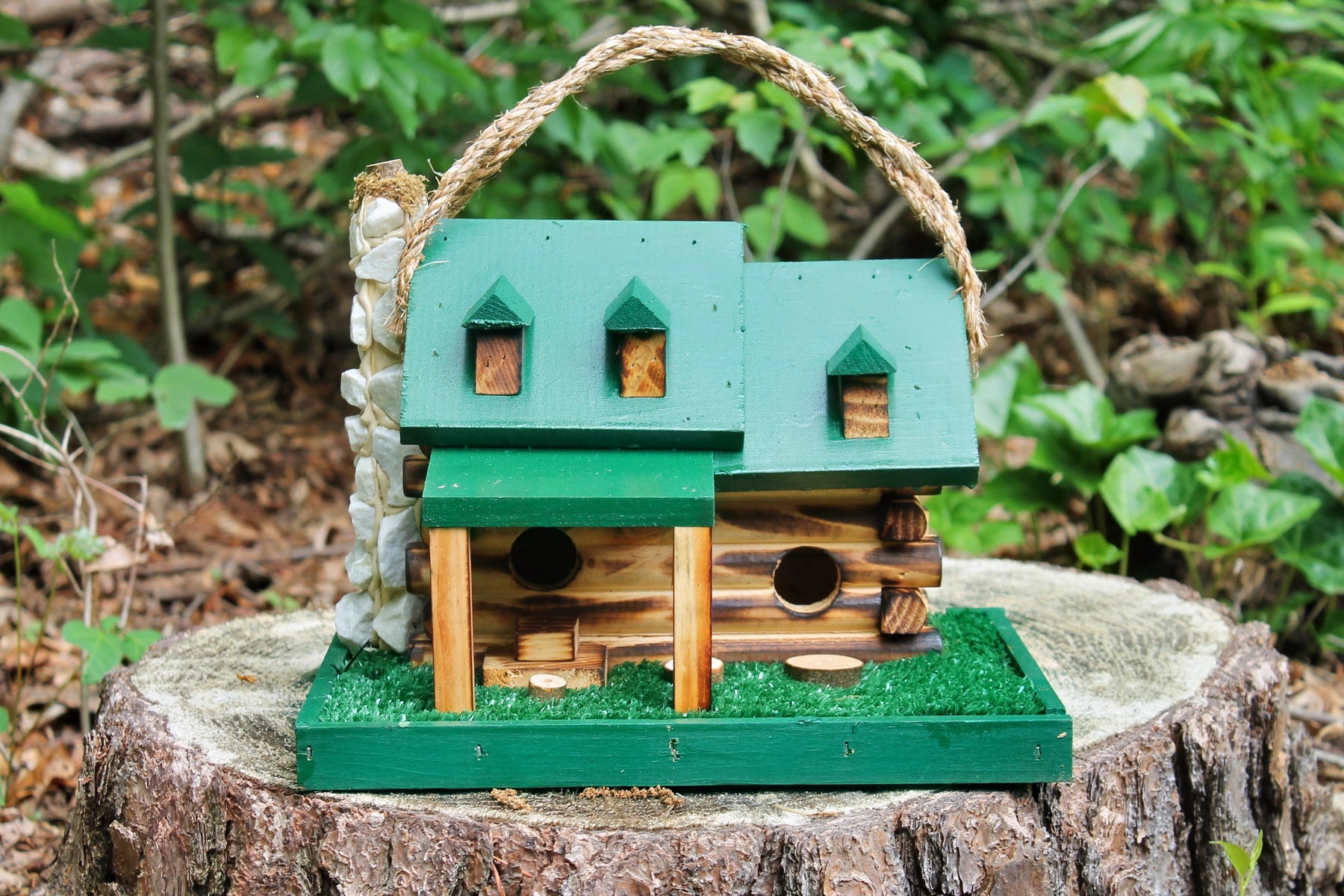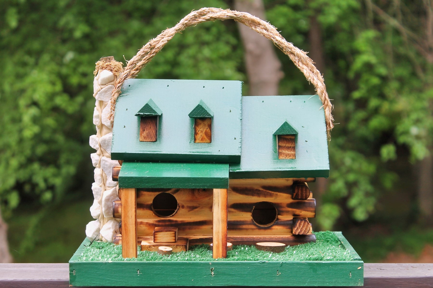 - The wood cabin birdhouse will provide safe shelter from, not only weather elements, but also predators