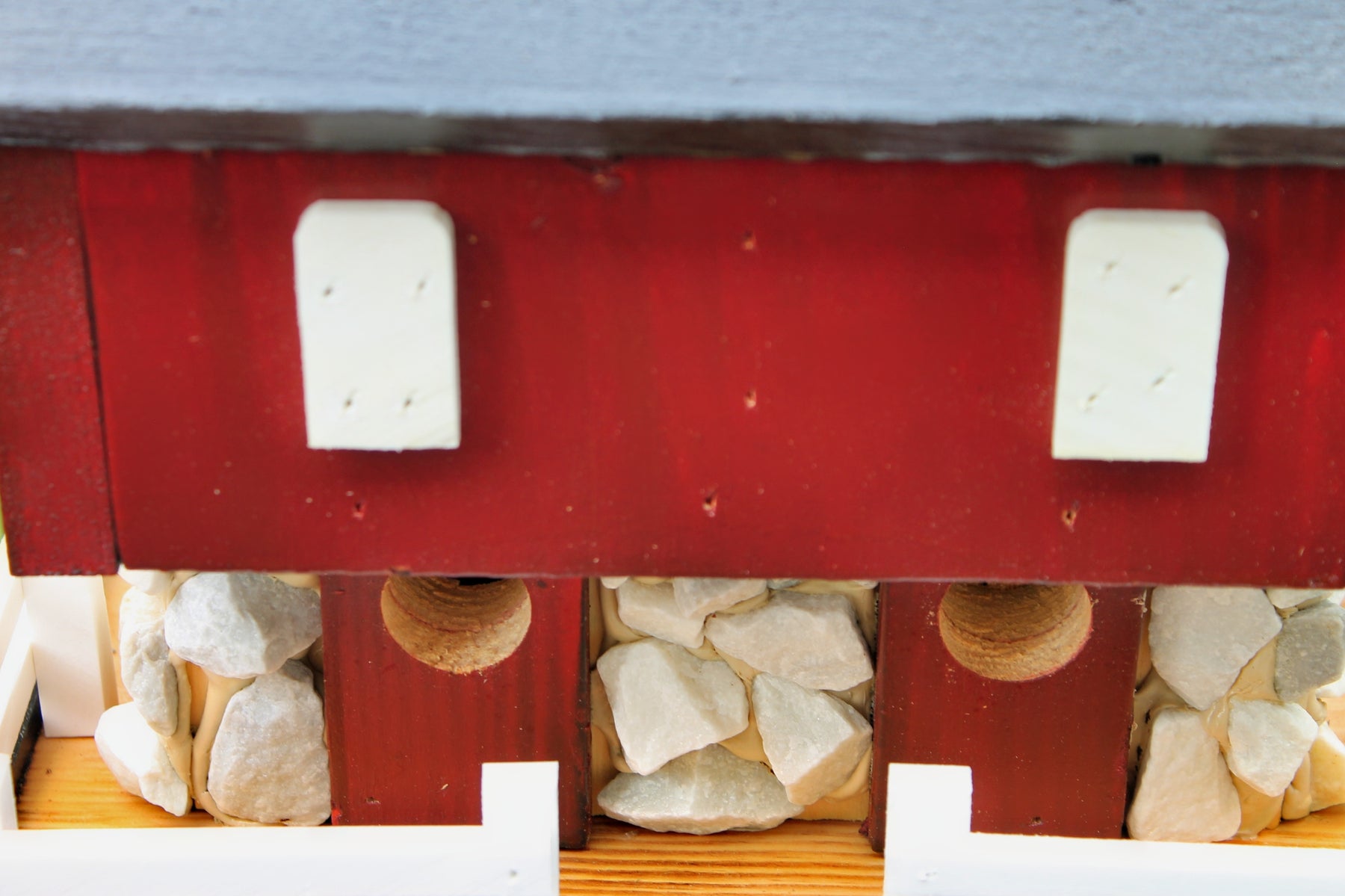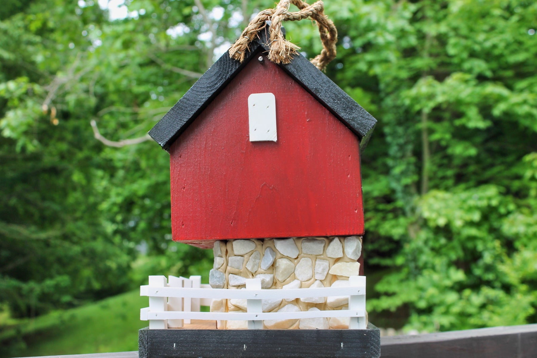Our charming Red Barn Birdhouse is perfect for birdhouse décor enthusiasts. Designed to resemble a cozy old barn, this decorative birdhouse will capture the hearts of bird lovers and bring joy to its inhabitants. Equipped with windows, two entrances, stone walls, and a surrounding fence, it is truly a faithful replica of a rustic barn.