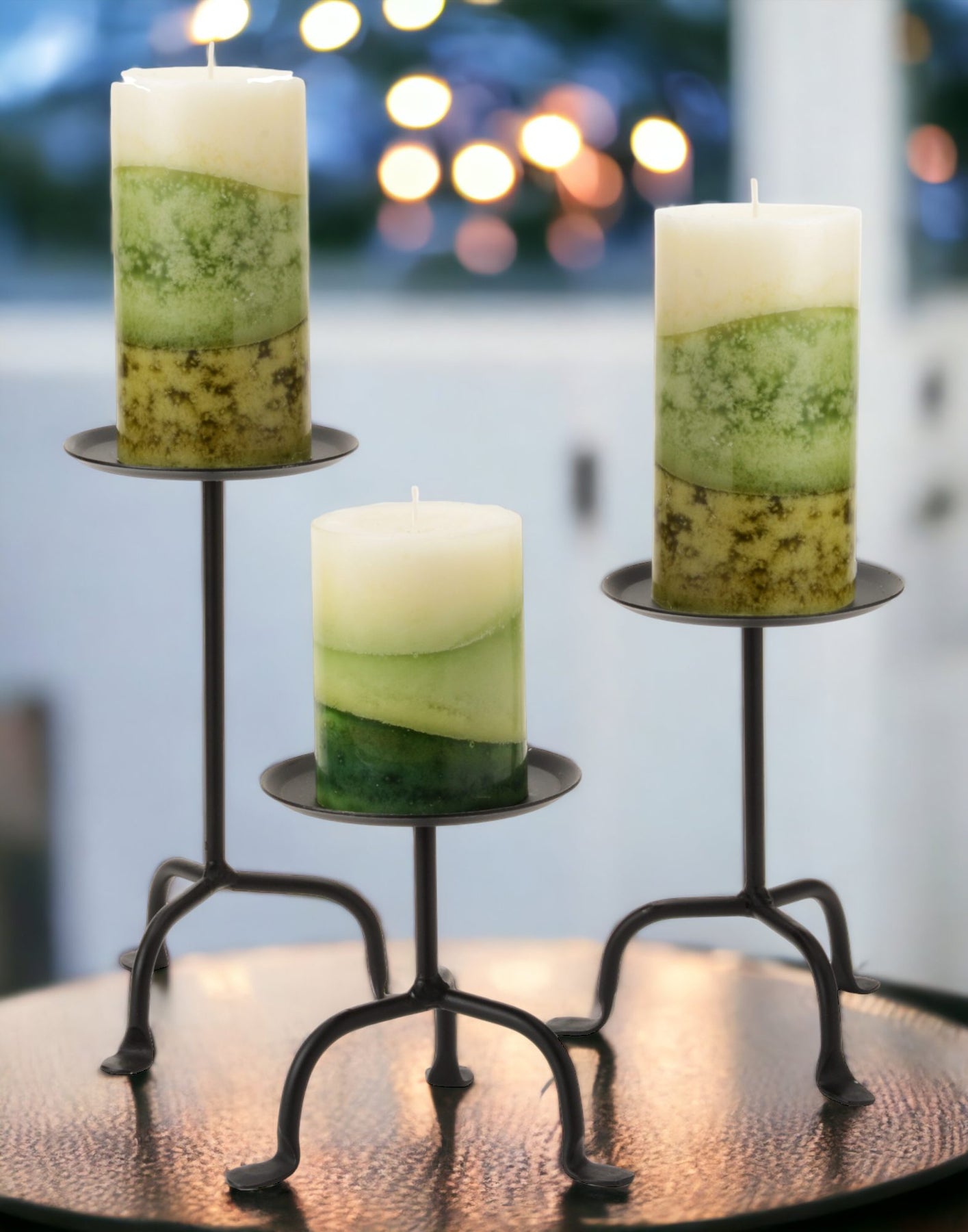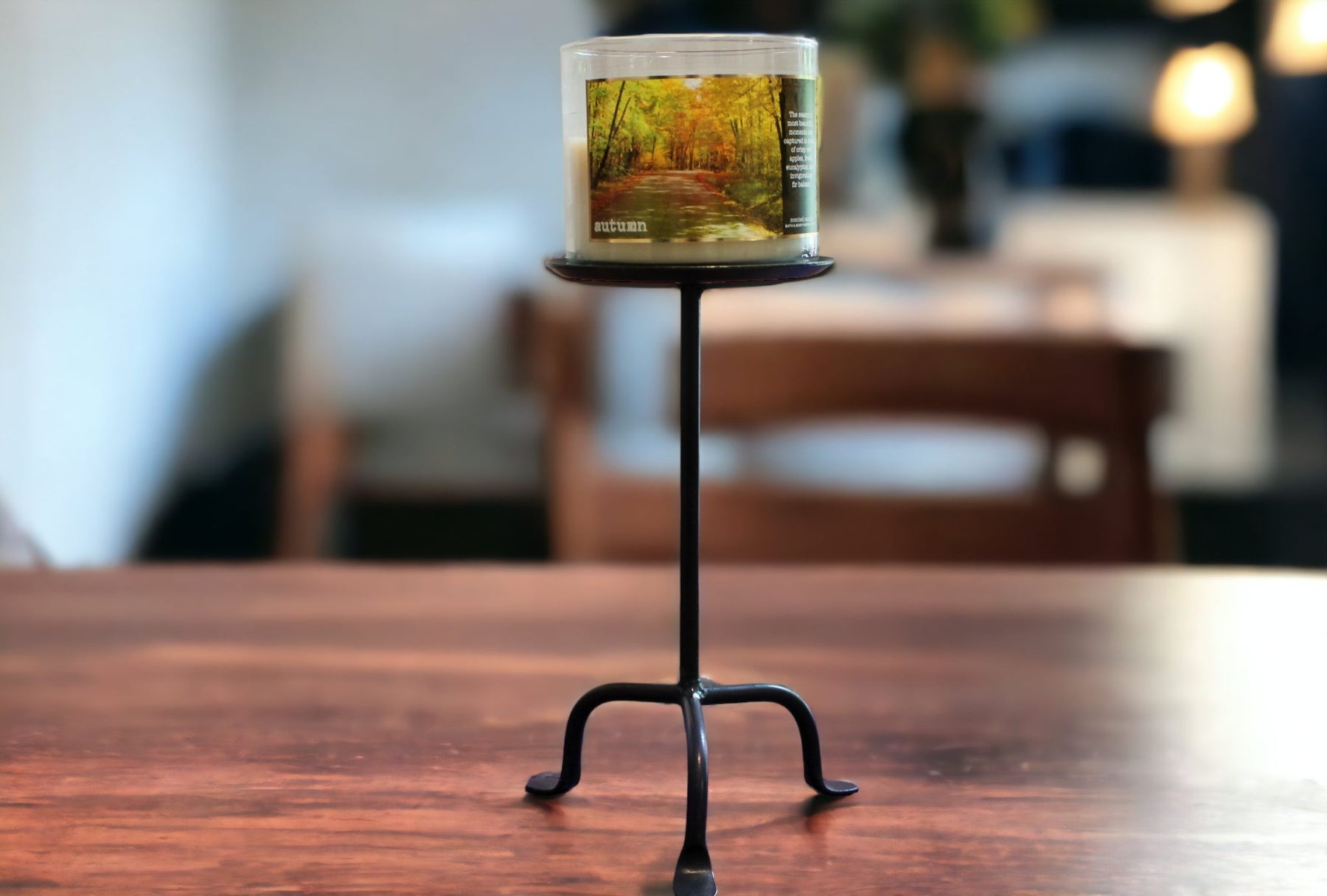 Our Metal Pillar Stand Candle Holders are expertly crafted by an Amish Metal Craftsman in Lancaster, PA. Available in three sizes, these versatile holders can be grouped together or displayed individually with your favorite pillar or jar candles. Elevate your décor by adding artificial flowers to the base for a seasonal touch.