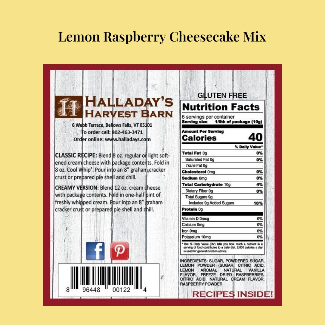Lucious Lemon Raspberry Cheesecake made with Halladay's Cheesecake Mix. Order today at harvestarray.com.