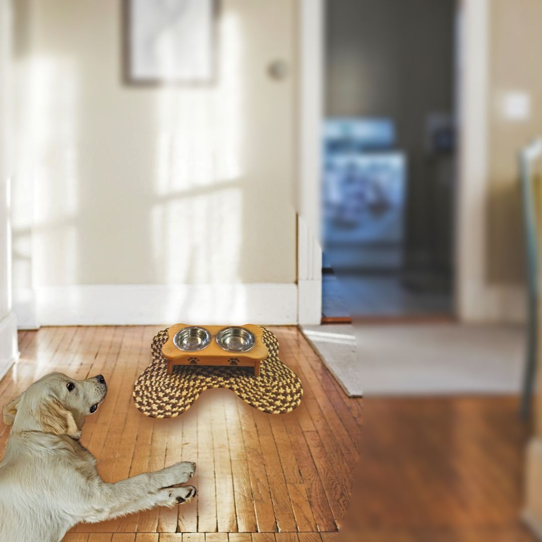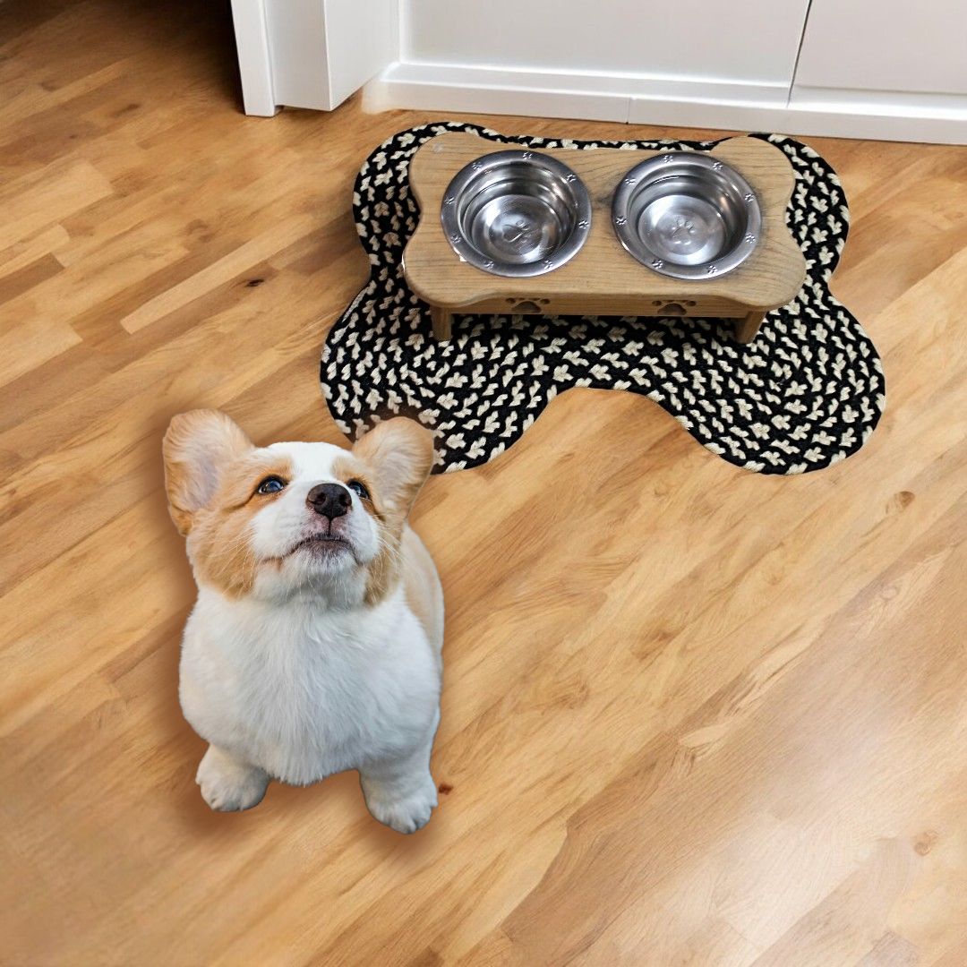 These Bone Shaped Braided Rugs are ideal for use under our double dog feeders.