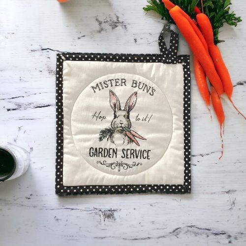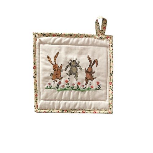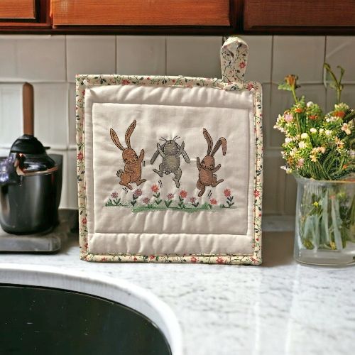 Adorable Dancing Bunnies Embroidered Potholder/Hot Pads at Harvest Array