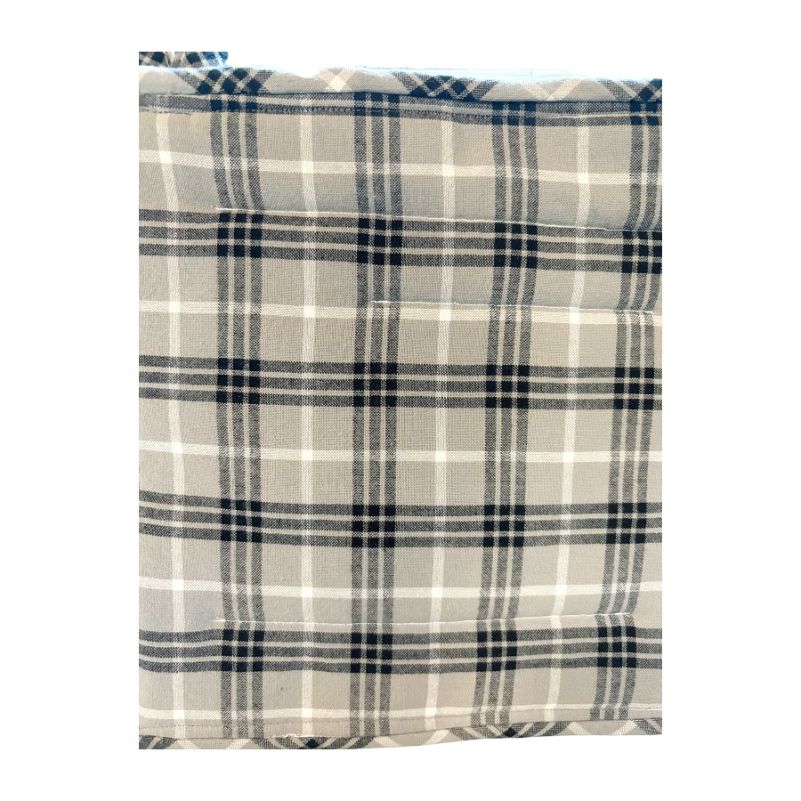 The back of the Raccoon Thief Potholder is sewn with a black, brown, and white plaid material.