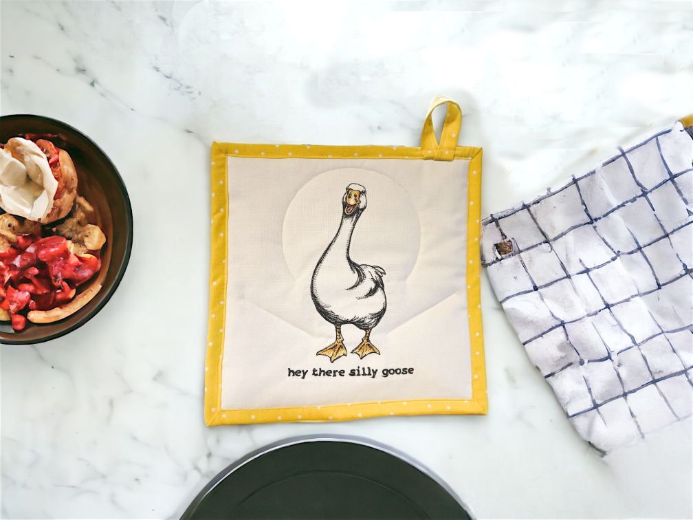 Our Silly Goose Potholder was made in the USA by a women owned and operated small business for Harvest Array.