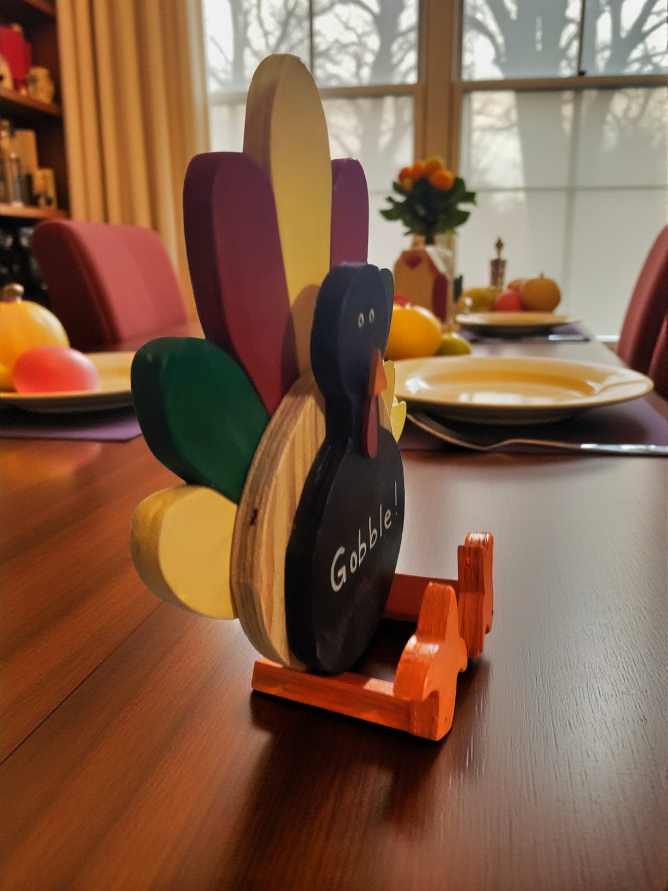 You can place the wooden Gobble Turkey on a shelf, table, or mantle. You can put it outside on your porch to welcome guests to your home during Thanksgiving. Children will love it.