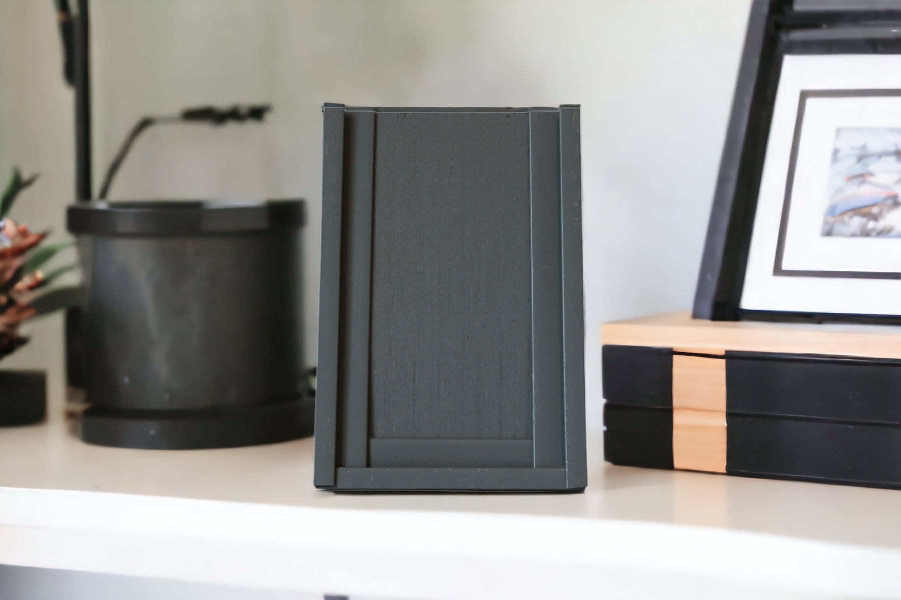 You can choose from four different colors of paint or get one unfinished. The plastic trim will hold your car in place. Each display can be mounted on the wall or has a pop-up stand for your desk.
