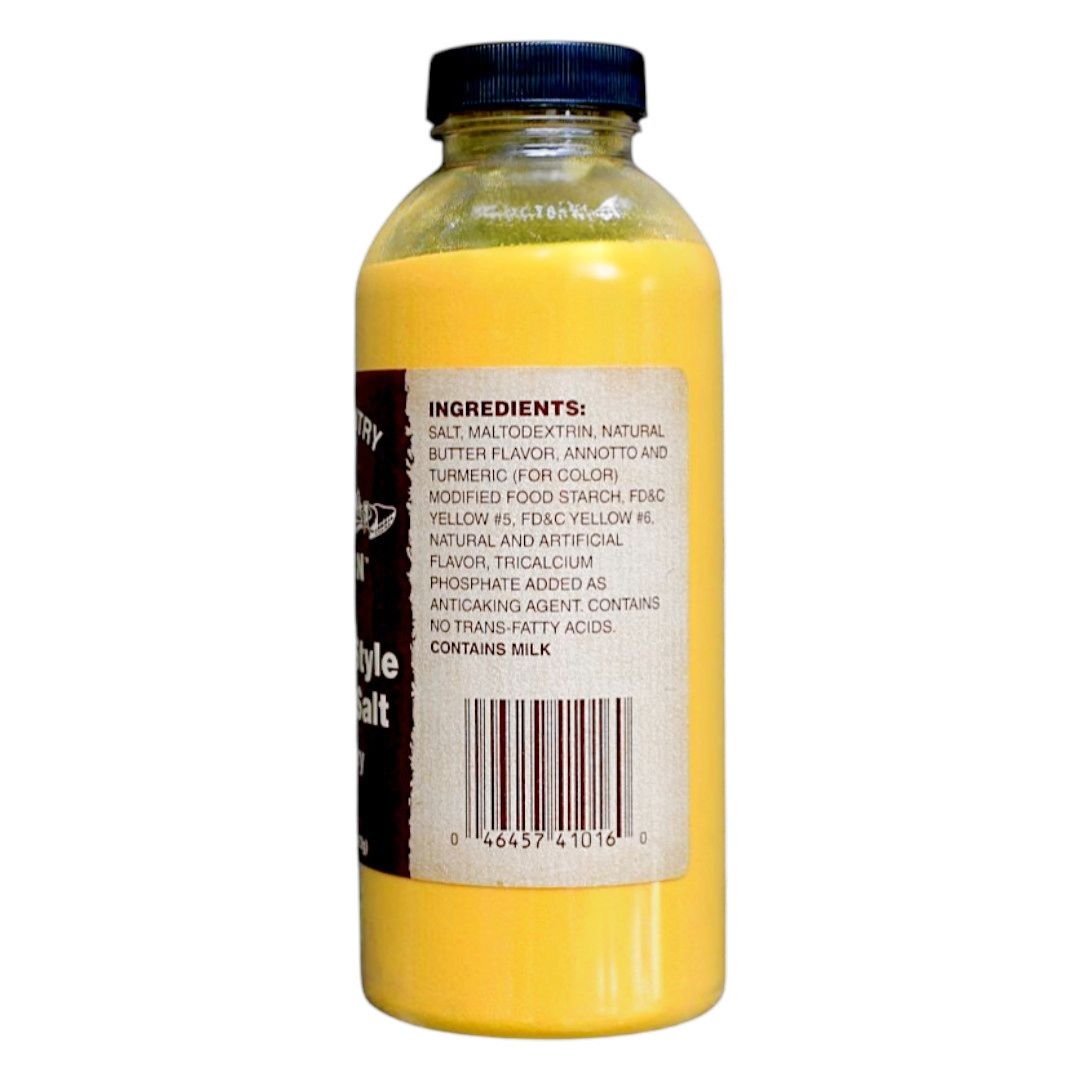 • Easy pour, 16 oz. bottle: ideal popcorn seasoning butter salt size for the whole family