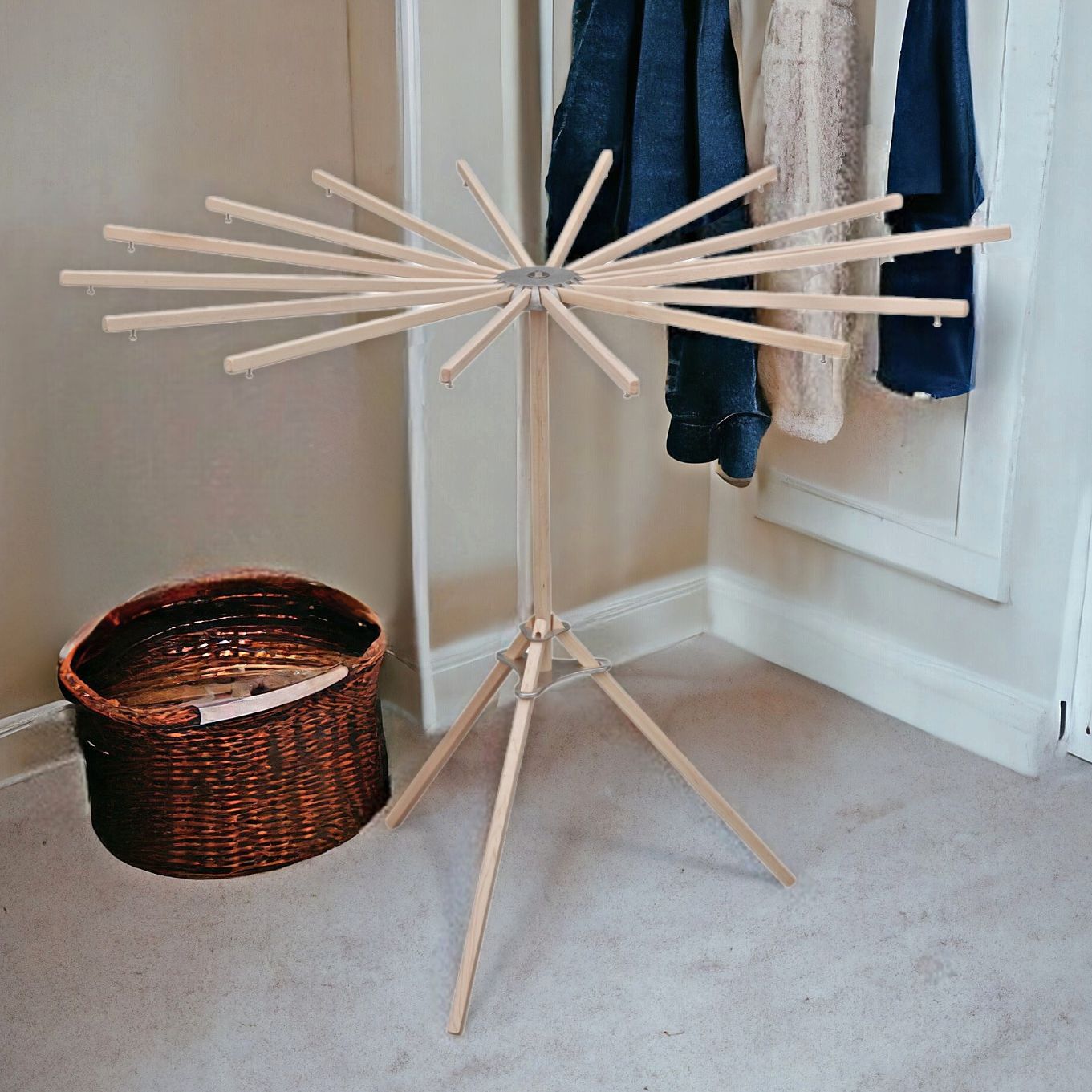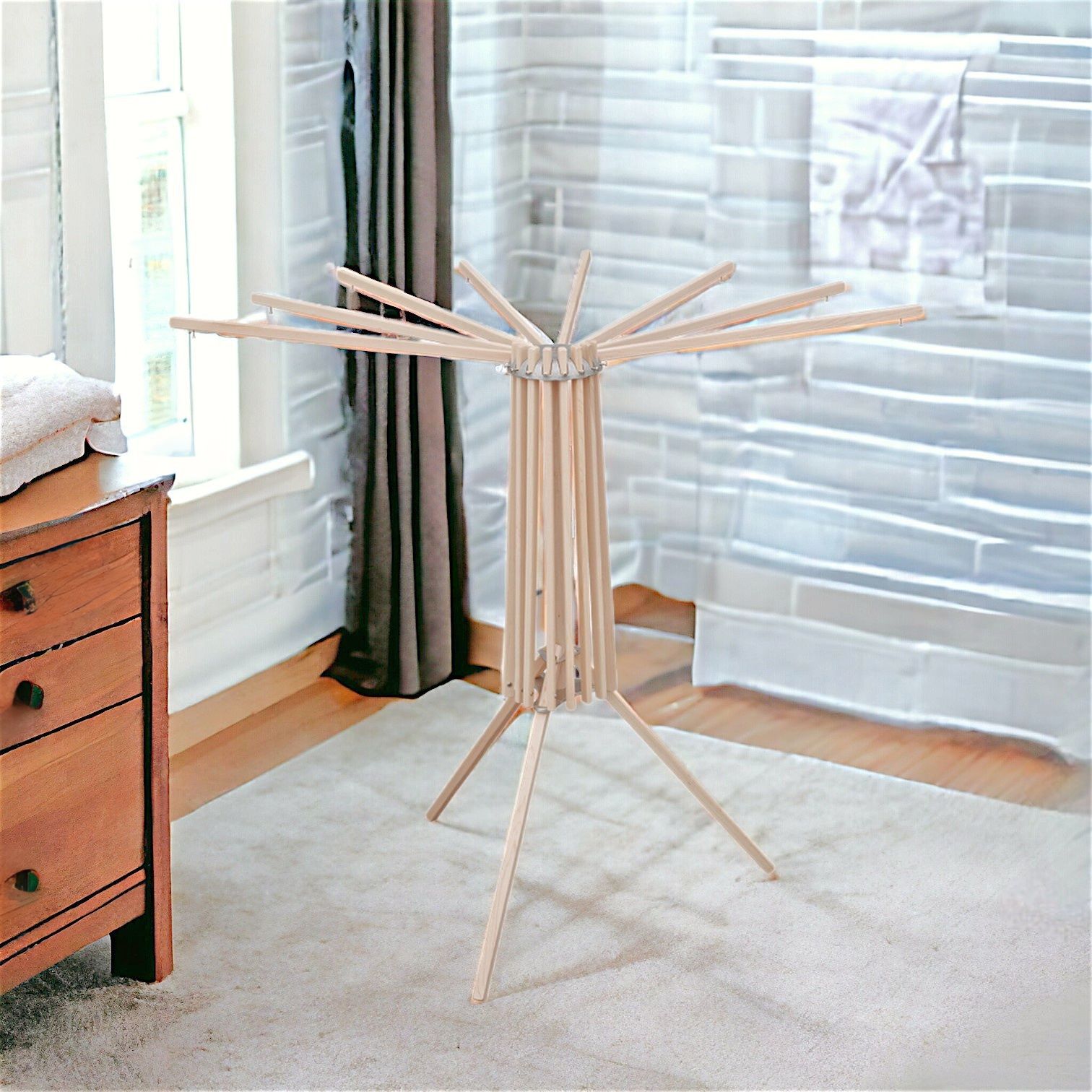 This 16 arm clothes drying rack is expertly crafted by skilled Amish craftsmen in Lancaster, Pennsylvania. They take pride in using traditional methods that have been passed down for generations, ensuring top quality and durability.