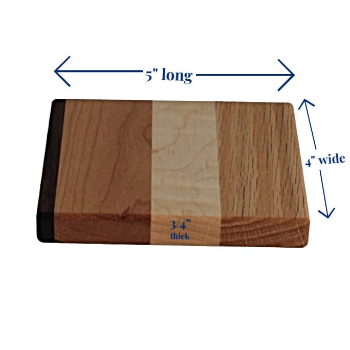 Instead of relying on thin fabric potholders to protect your table from a hot pan, use our 3/4 inch thick wooden hot pads. The surface measures 4 inches by 5 inches, keeping many size pots and pans out of contact of the table or countertop.