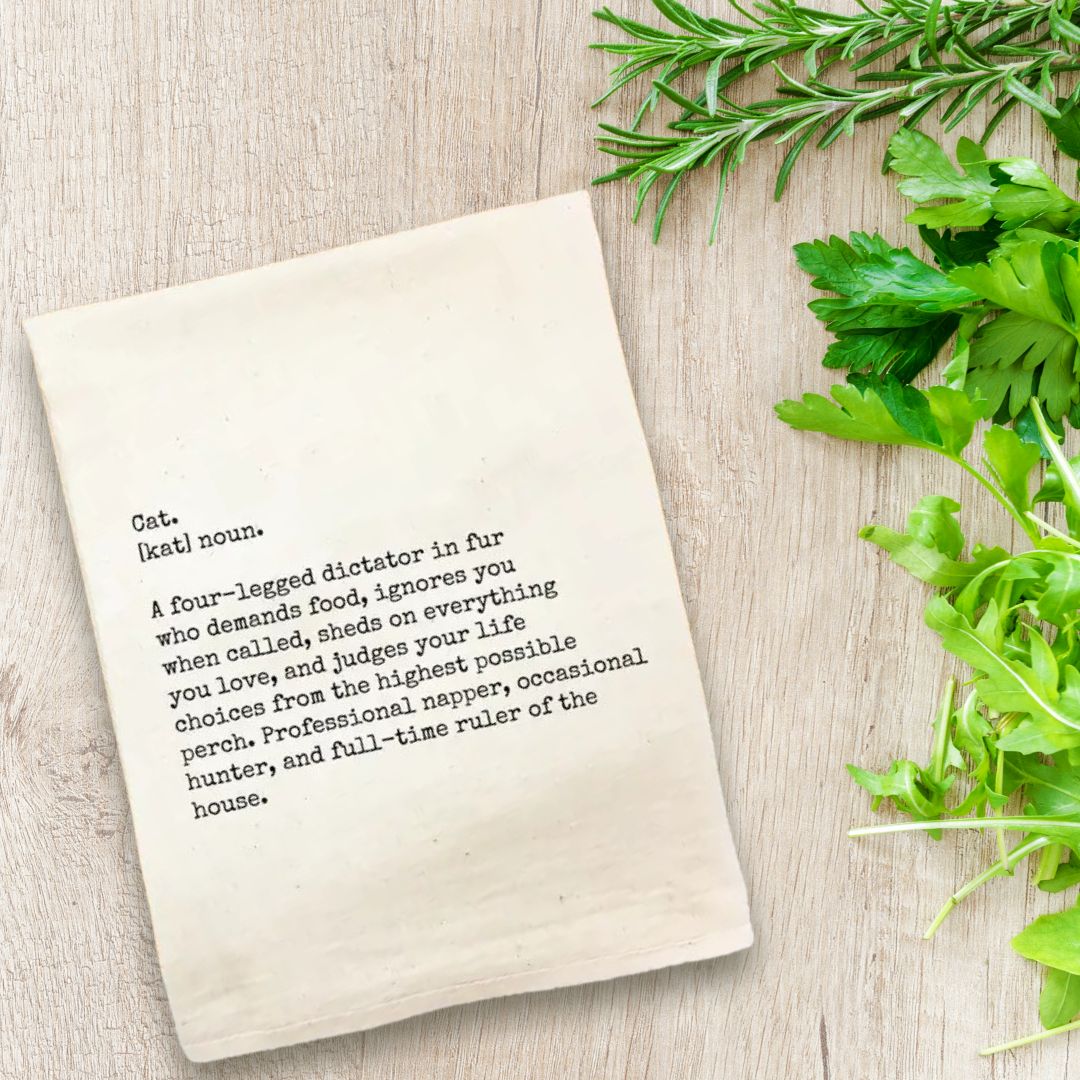 Featuring a witty and playful "cat definition," it’s sure to bring a smile to any cat lover’s face. Whether you're a proud pet parent or just appreciate a good laugh, this delightful towel makes a fantastic addition to your home or a thoughtful gift for fellow cat enthusiasts.