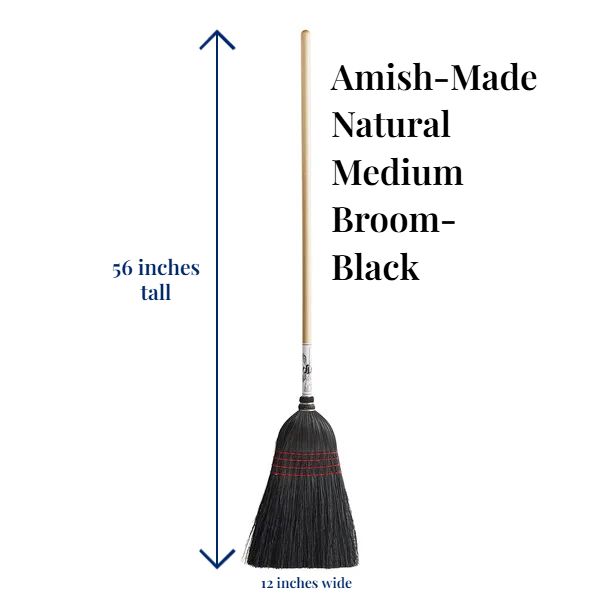 Amish-Made 100% Natural Broomcorn Bristle, Black, Medium Broom for Indoor and Outdoor Use