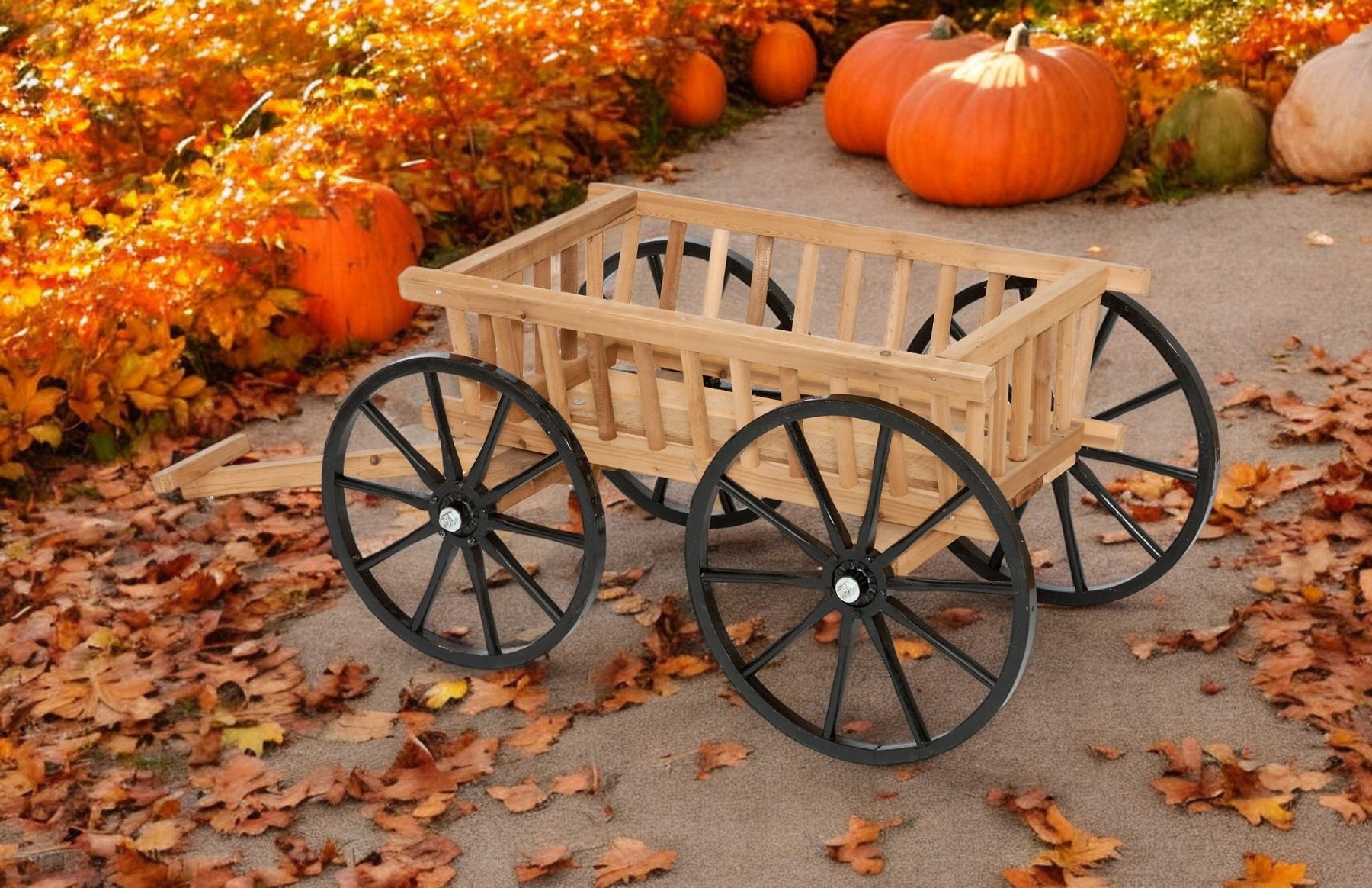 These decorative Amish-made cedar pumpkin wagons are made with the highest quality and standards.