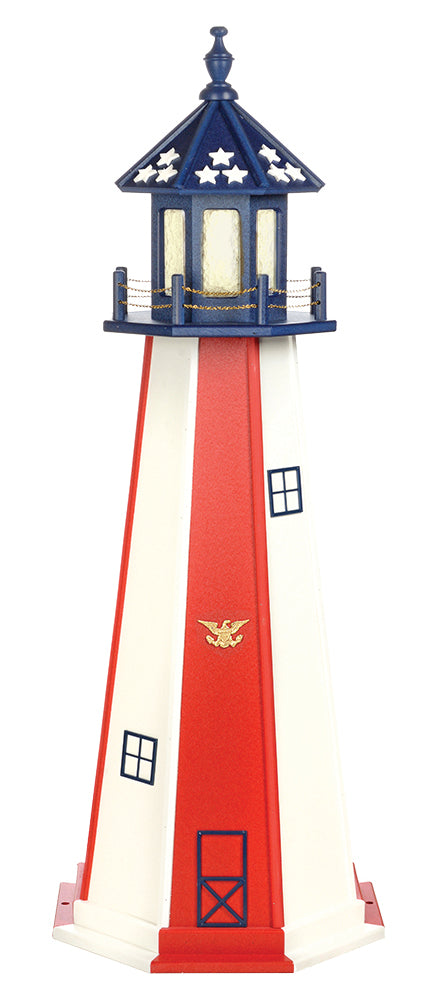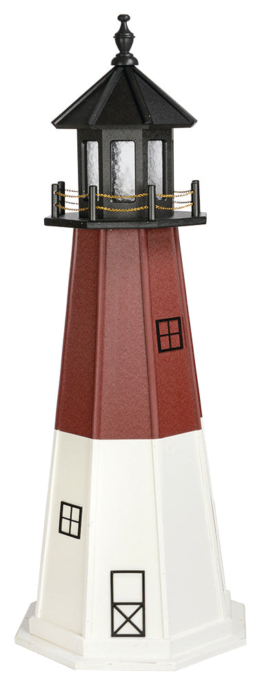 Our Poly Lighthouse - 4 Feet are maintenance free and will not splinter, crack or fade and never need painting. Each lighthouse is handcrafted by the Amish community. They are environmentally friendly and made from recycled material.