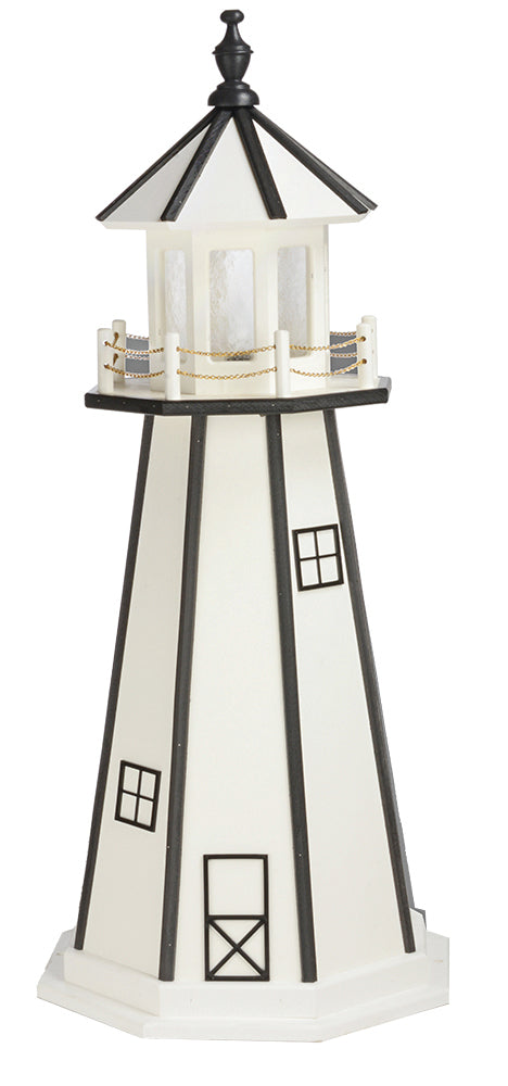 Our Poly Lighthouse - 6 Feet are maintenance free and will not splinter, crack or fade and never need painting. Each lighthouse is handcrafted by the Amish community. They are environmentally friendly and made from recycled material.