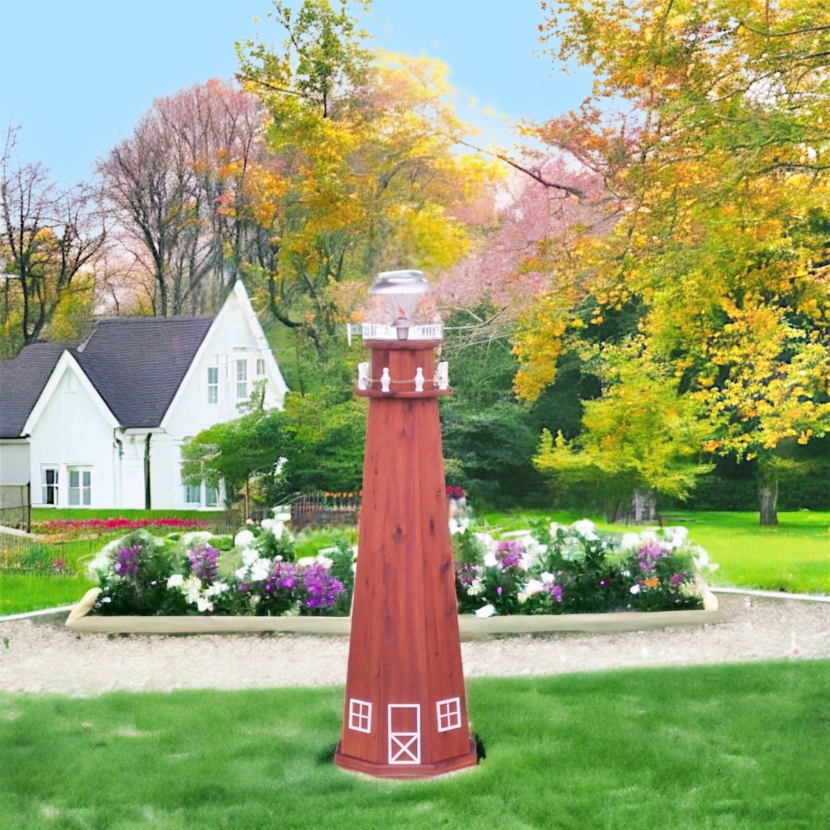 Each cedar lighthouse is handcrafted, by the Amish community in Indiana, from top-quality aromatic red cedar and then milled for a smooth finish. We strive to build quality products to enhance your lawn and garden.