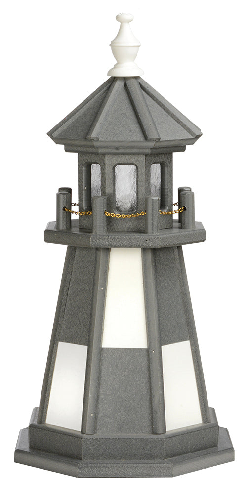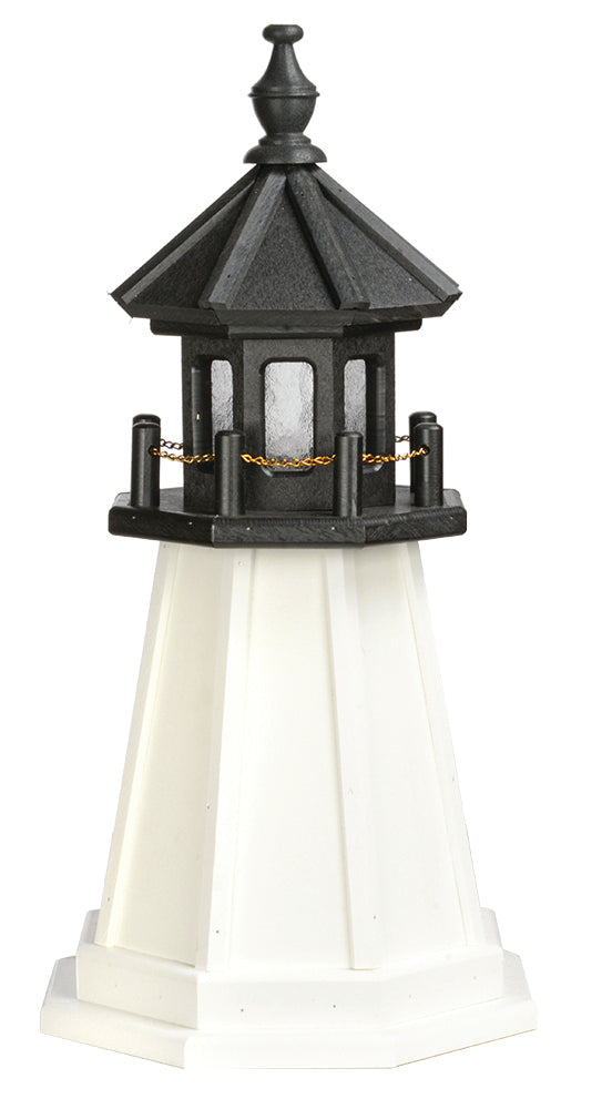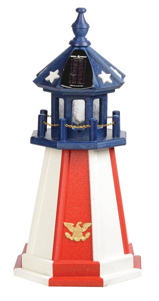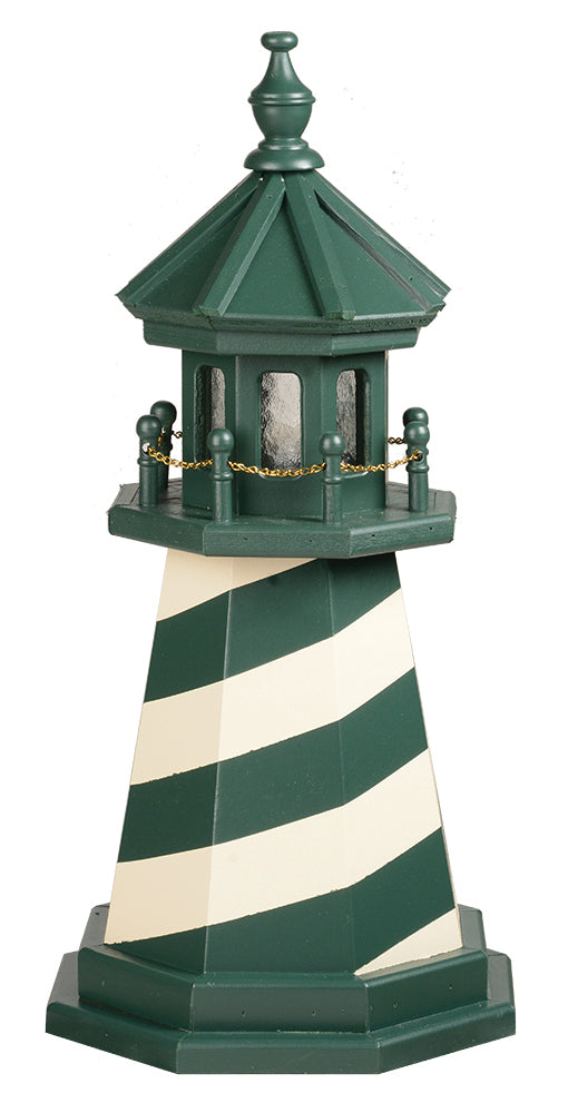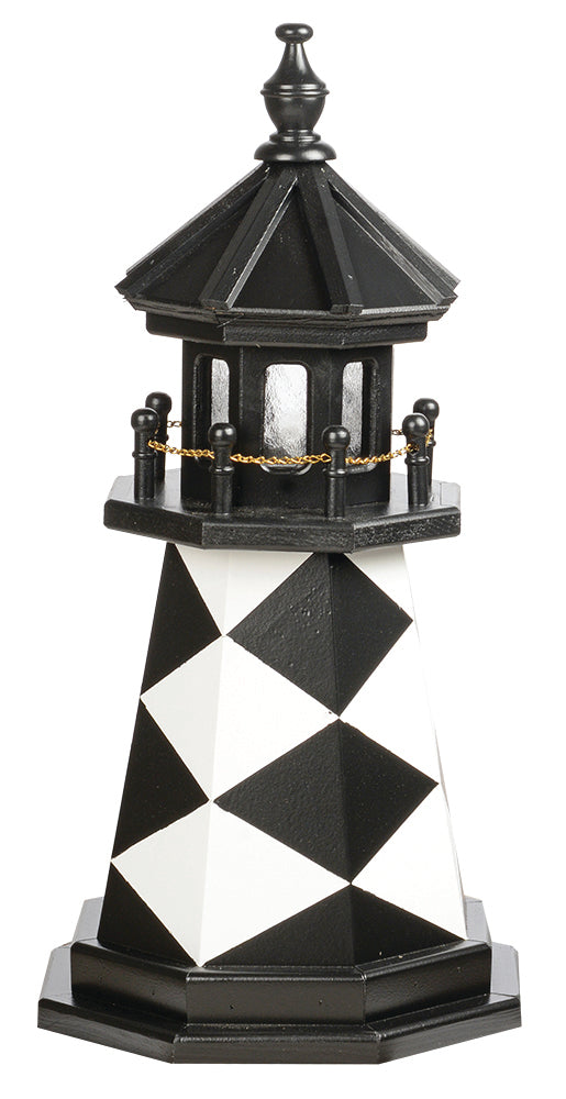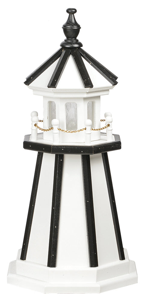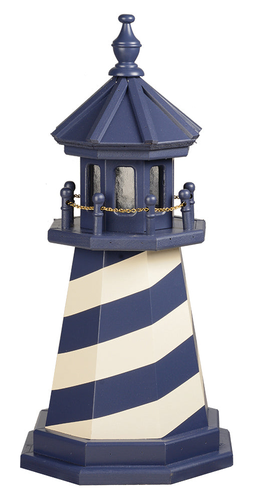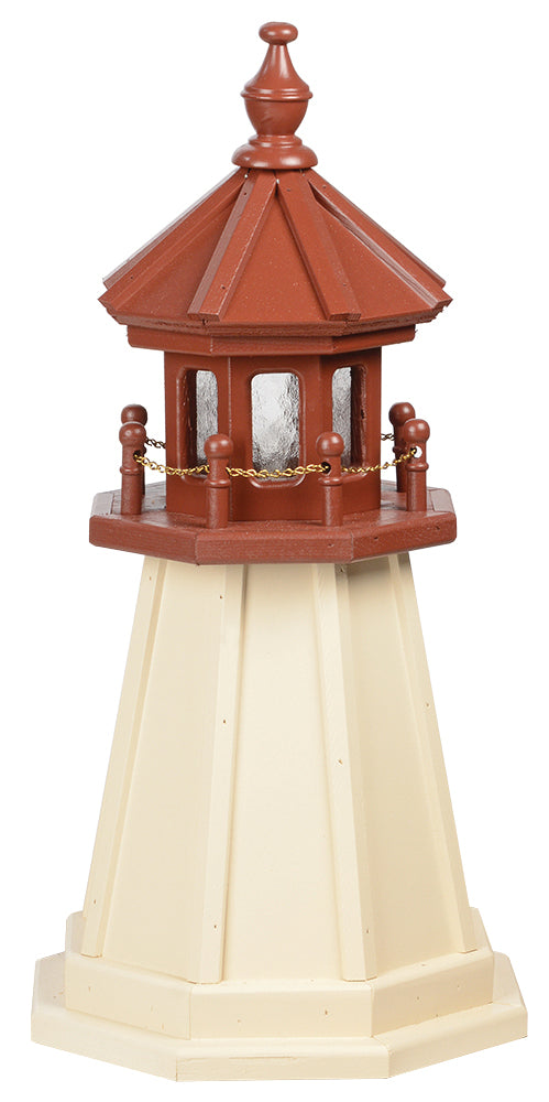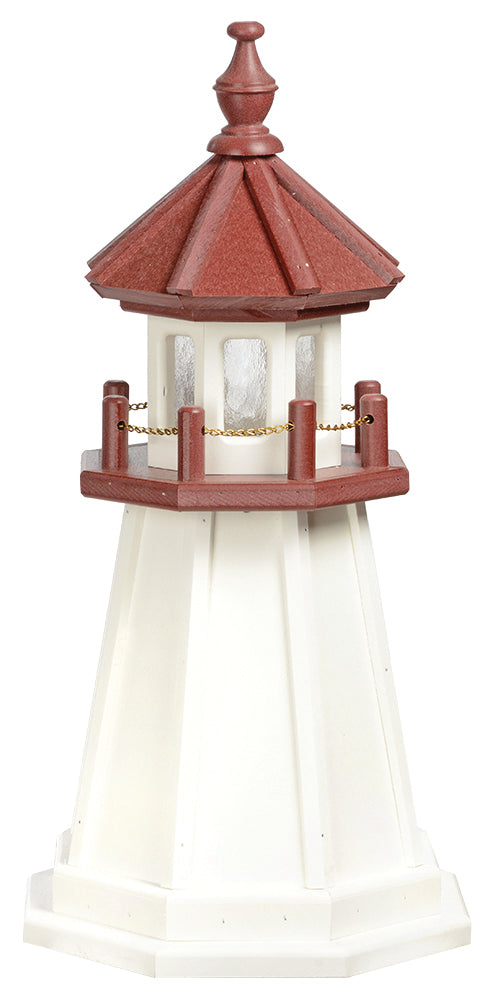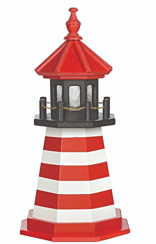 Each 2-foot Wooden Lighthouse is handcrafted, by the Amish community, from top quality signboard plywood and painted with an exterior grade paint. Our products are built to endure all types of weather conditions