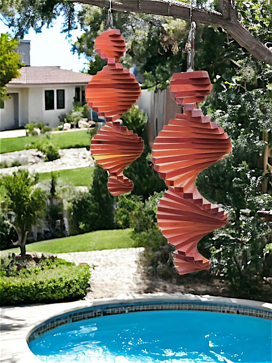 Your guests will be so impressed with the expert craftsmanship and beautiful design. Hang the spiral spinner from your favorite tree or a shepherd's hook by the attached ball-bearing swivel and metal carabiner.