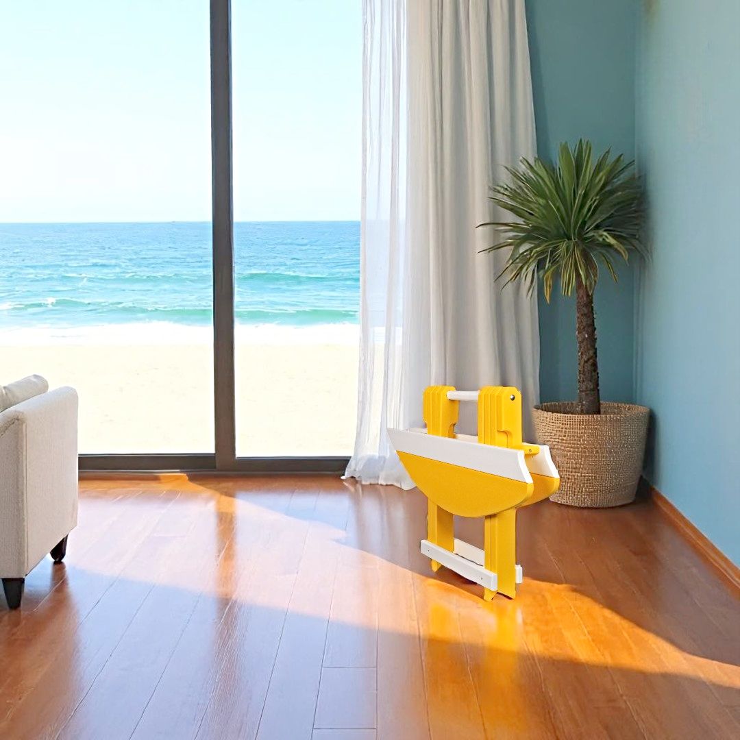 Yellow and White  Poly Surf Board Folding End Tables - Folded up