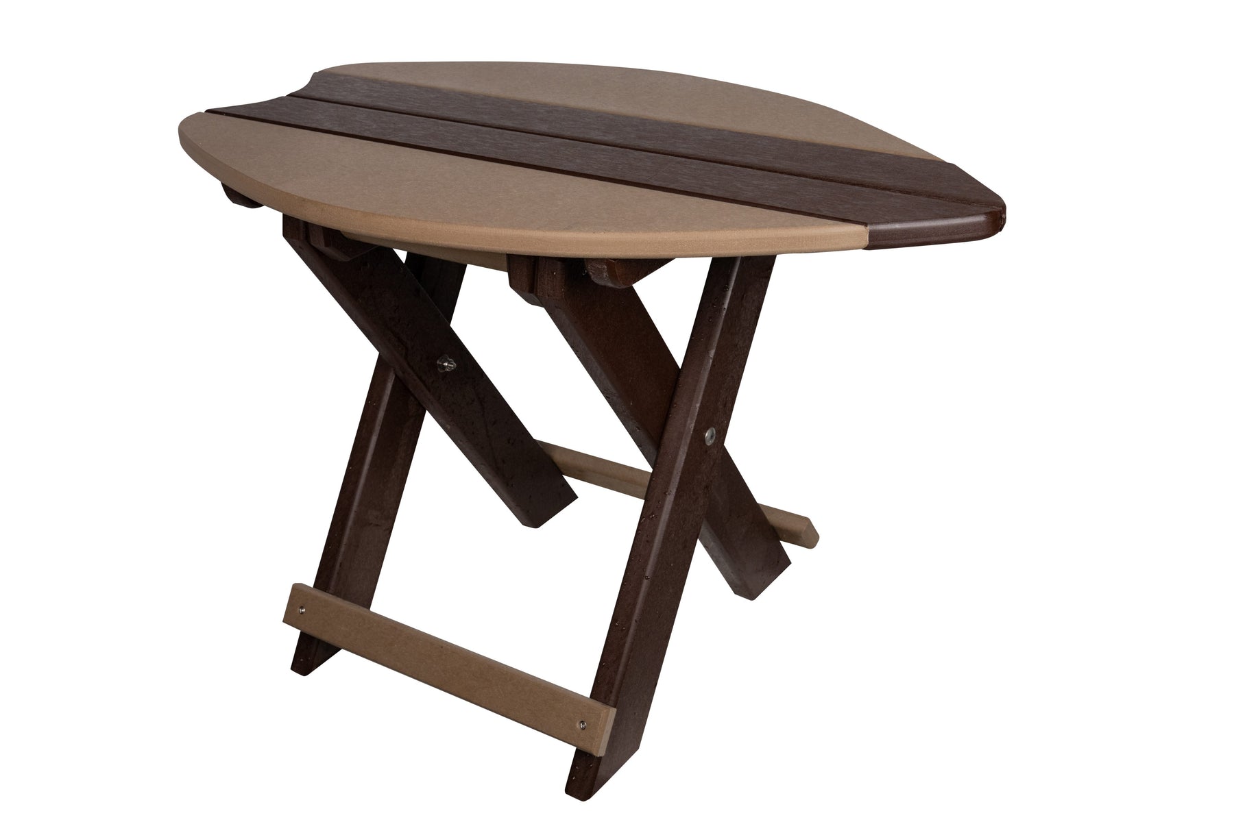 Our surf board folding side tables will come in handy around your yard or deck. Each table is very efficient, compact, and very easy to carry around. Match them up with your Adirondack chairs, benches, gliders, and other deck furniture.