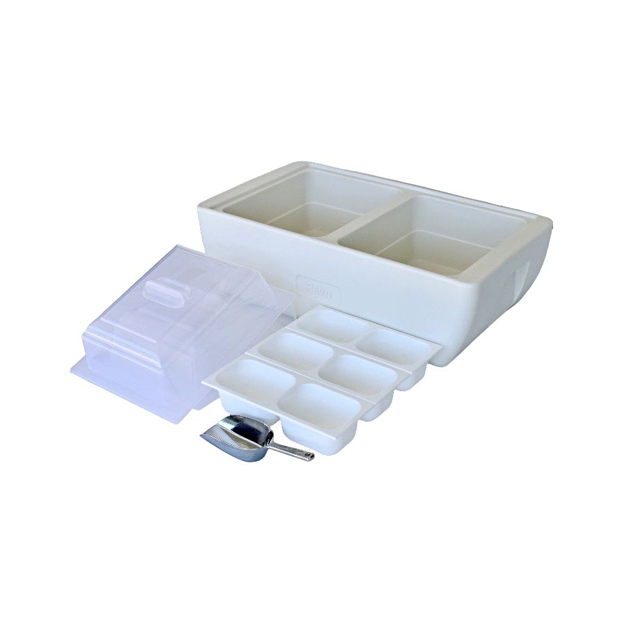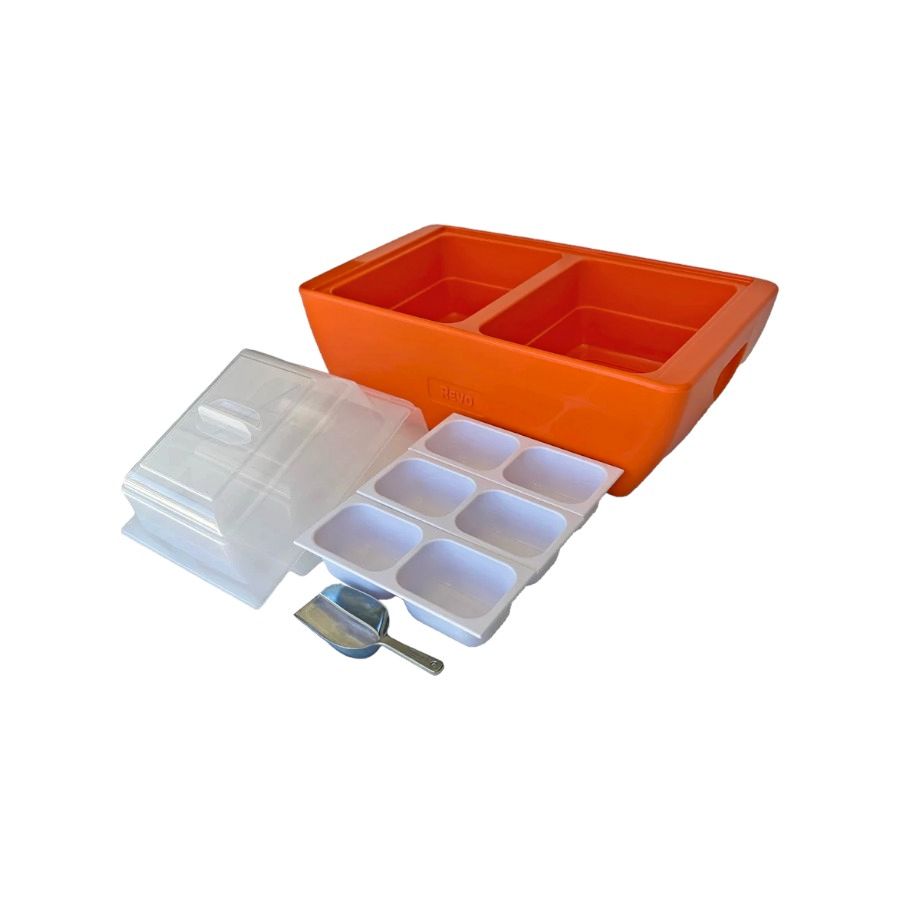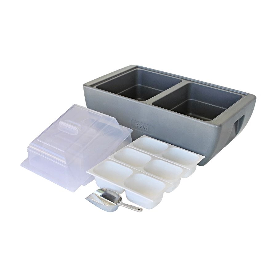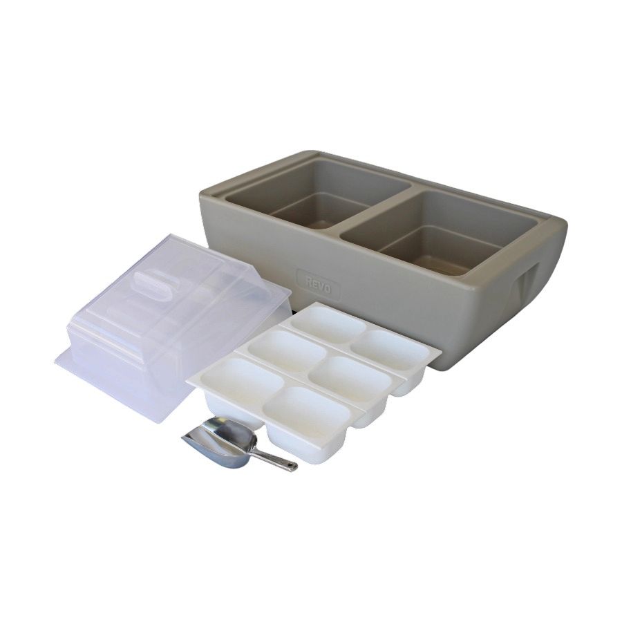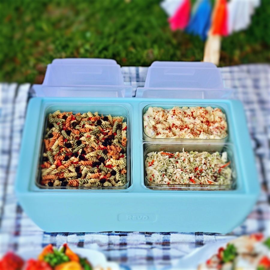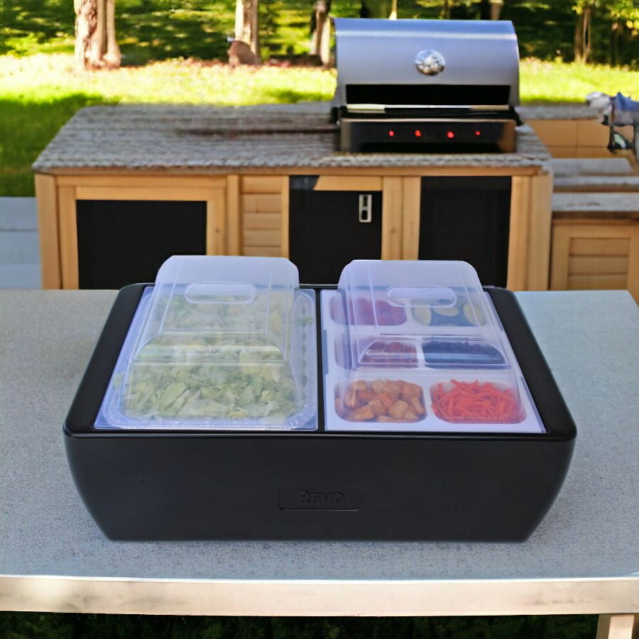 The two compartments in the REVO Dubler Cooler can act as a beverage station for a wedding shower, small, intimate wedding, retirement party, poker night, or bunko night. This cooler can serve as a Mimosa bar to a Taco Bar to a Salad Bar. It makes it easy for guests to serve themselves.