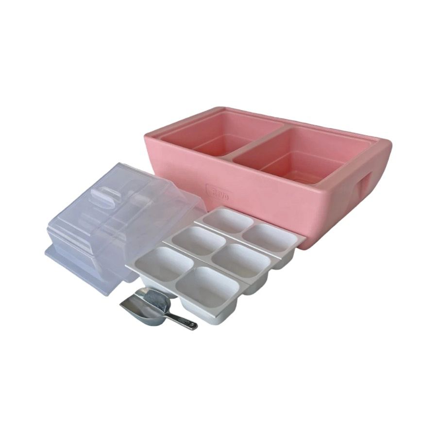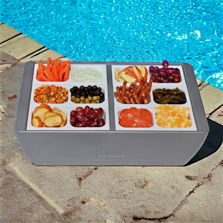 - This fun and incredibly versatile party cooler with condiment trays provide plenty of display options.