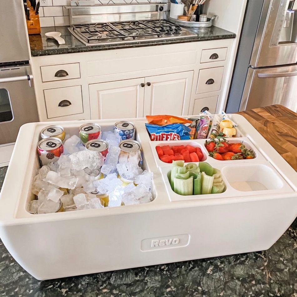 - Multipurpose cooler for parties: beverages and snack station combined.