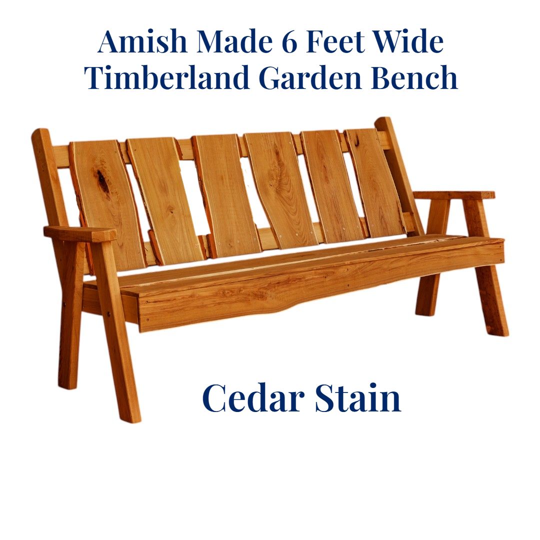 Unwind on a warm evening and take in the beauty of your backyard oasis with this handcrafted 6-foot Timberland Garden Bench. Made from premium Locust wood, its rustic charm and rugged durability make it perfect for any garden, patio, sunroom, or living space. Designed to seat four or five comfortably, the striking "Live Edge" silhouette showcases the raw elegance of nature, turning this Amish-made bench into a standout piece that adds warmth, character, and conversation-starting style to your indoor or outdoor retreat.