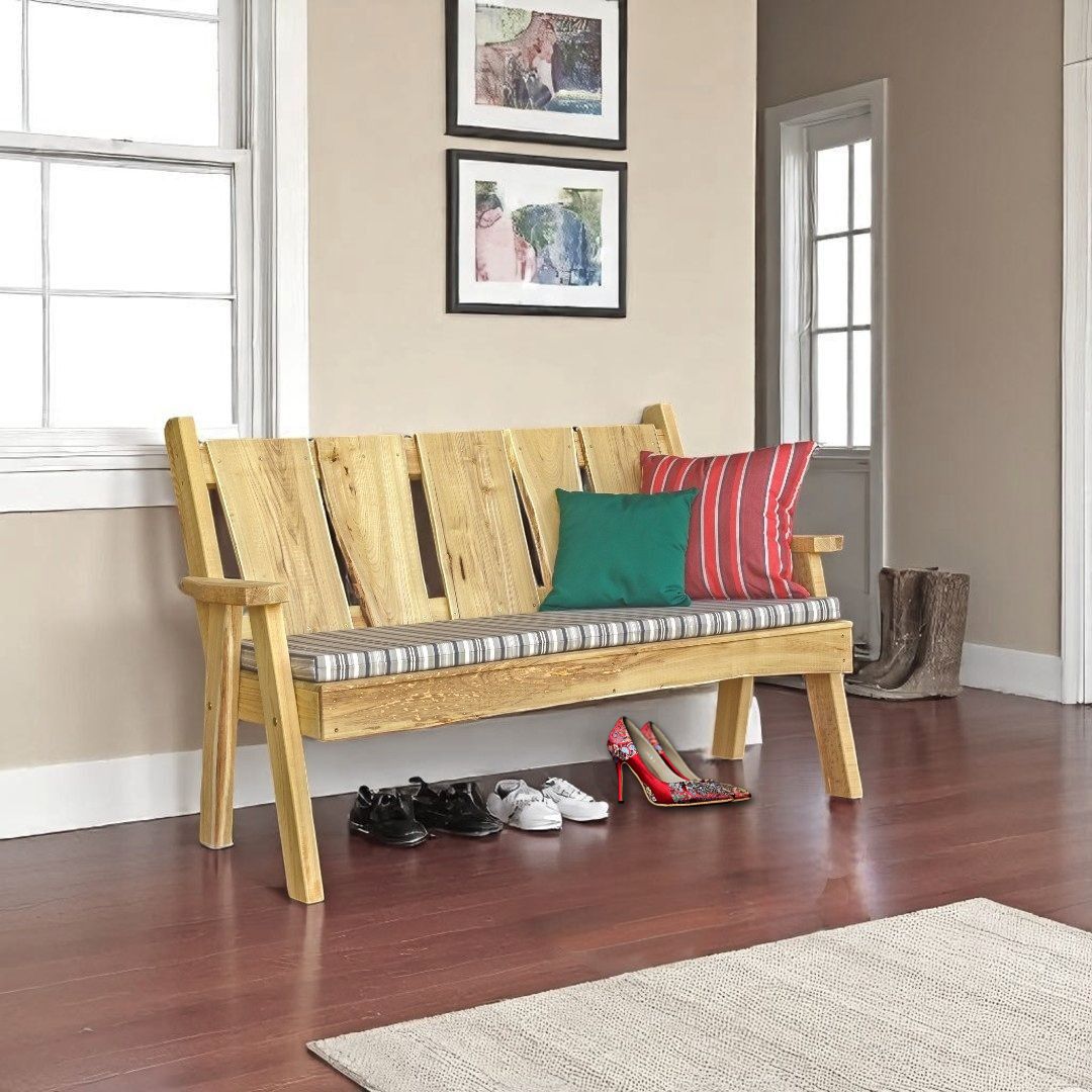 Choose between four finishes - unfinished, natural, cedar, or mushroom, and indoor clear stain or outdoor weather sealer. We offer free shipping within the USA (excluding Alaska and Hawaii) for your convenience. Experience the joy of decorating your yard or indoor space as well as adding extra seating, with a rustic 60" Timberland Bench with Live Edge.