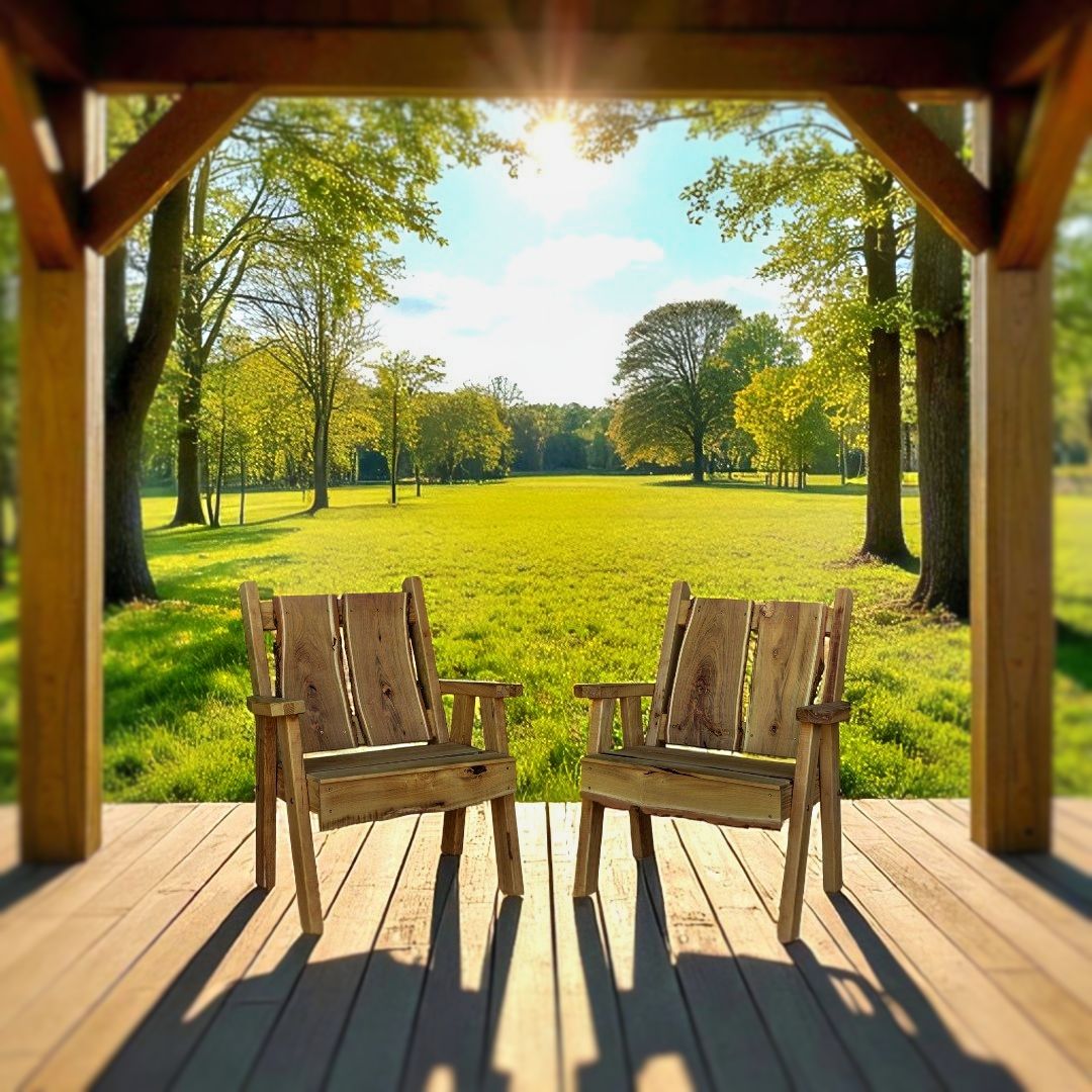 Locust wood is known for its incredible density and natural resistance to decay, pests, and moisture, making it one of the most durable woods for outdoor furniture. Left unfinished, it weathers beautifully to a soft silvery-gray, or it can be stained and sealed to maintain its rich golden-brown hue. Whether placed on a porch, patio, or tucked into a garden nook, the Timberland Chair is built to thrive in the open air—rain or shine.