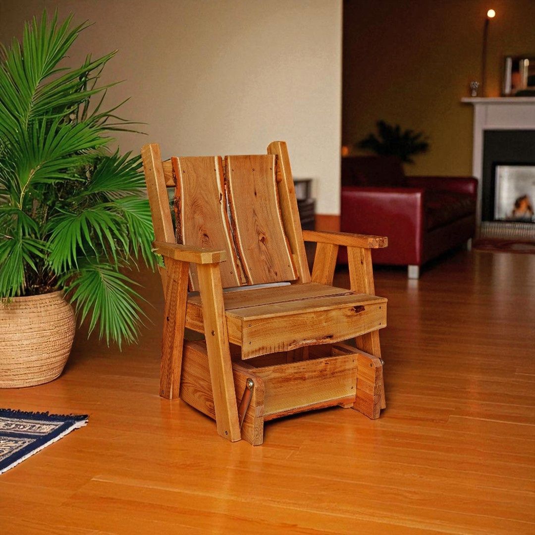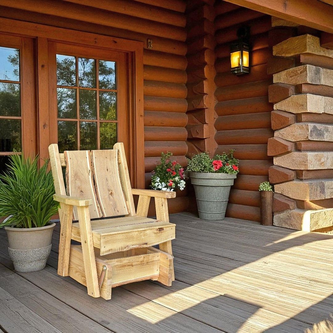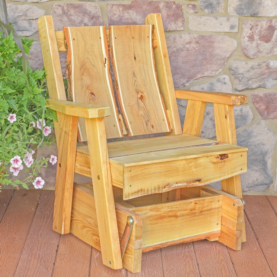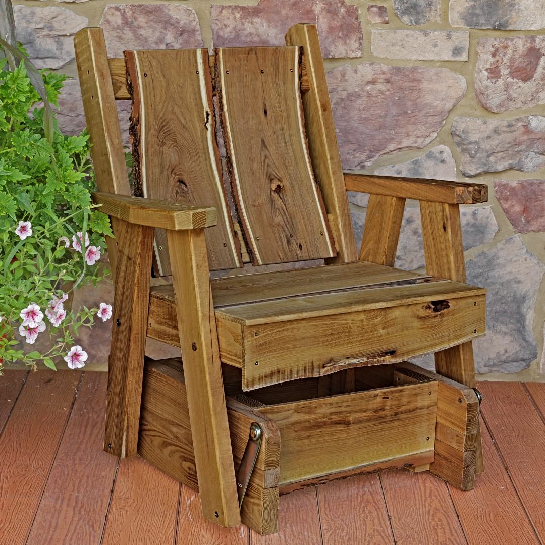 Choose between four finishes - unfinished, natural, cedar, or mushroom, and indoor clear stain or outdoor weather sealer. We offer free shipping within the USA (excluding Alaska and Hawaii) for your convenience. Experience the joy of decorating your yard or indoor space as well as adding extra seating, with a Locust Wood Timberland Glider Chair with Live Edge.