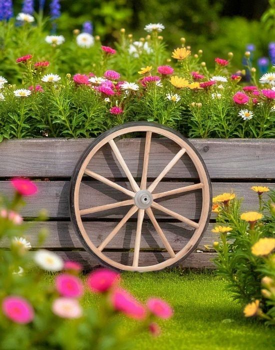 These decorative wheels are the perfect décor item for your flowerbed or other outdoor space. Add this buggy wheel to create an added element for your yard that will be enjoyable for many seasons. Additionally, they can be used to create decorative items such as wagons, birdhouses, and other projects.
