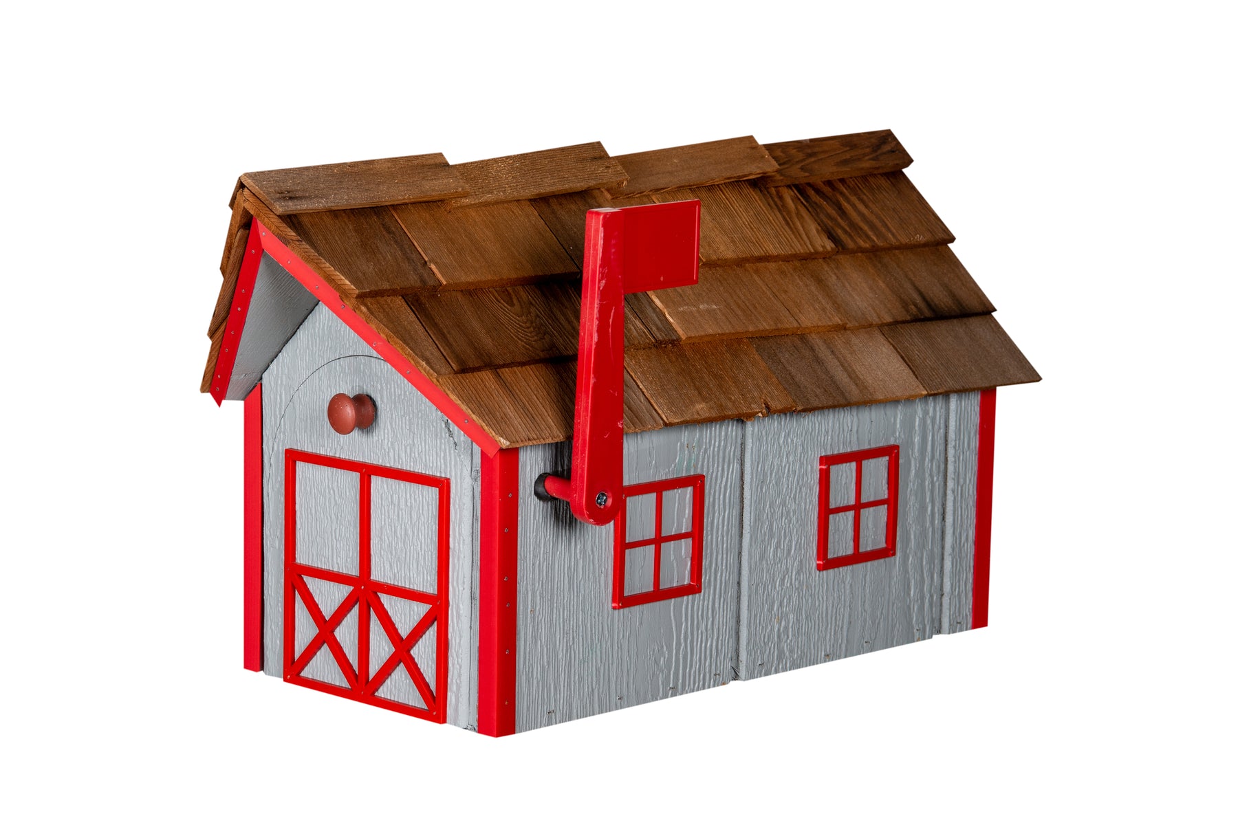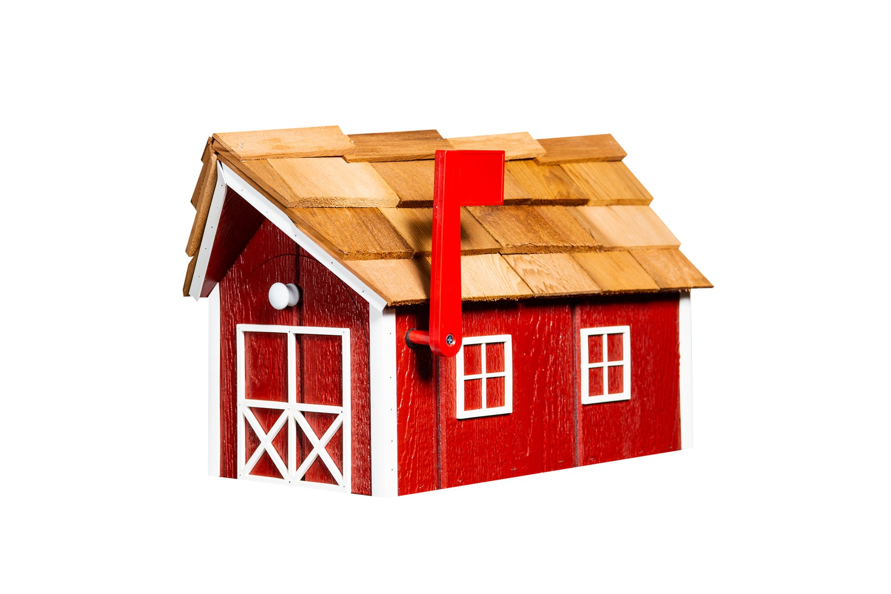 Upgrade your curb appeal with our Amish-made Wooden Mailbox with a Cedar Roof—a perfect blend of charm and durability. Expertly crafted from weather-resistant MDO plywood and topped with a cedar shake roof, this mailbox is built to withstand the elements while keeping your mail safe and dry.