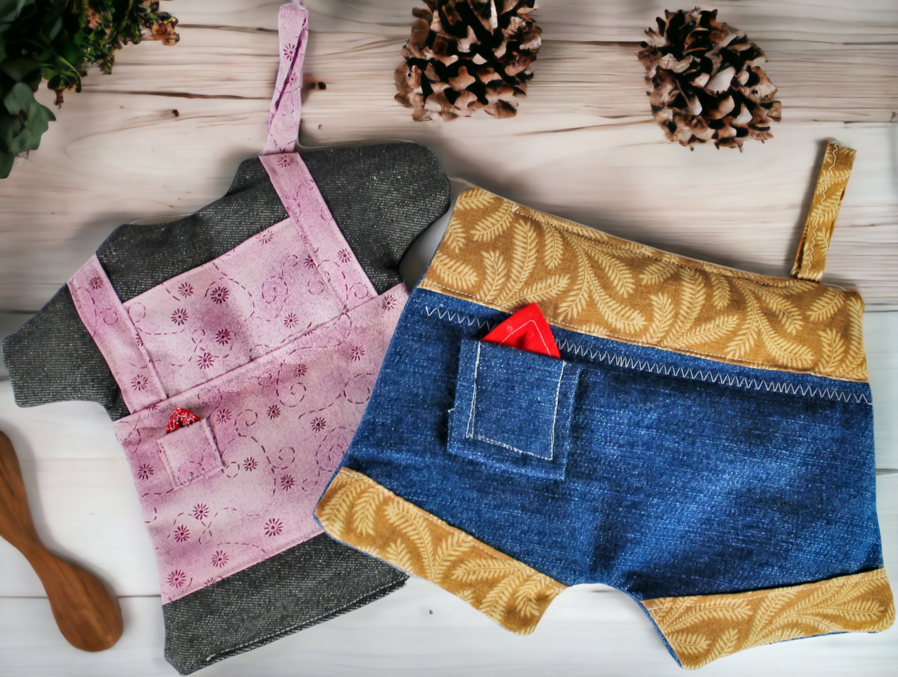 These potholders blend functional heat protection with homey charm, perfect for adorning countertops, kitchen islands or hanging as wall décor. Their depiction of a boy and girl evoke a playful, homespun allure, becoming standout pieces among your kitchen décor accessories.