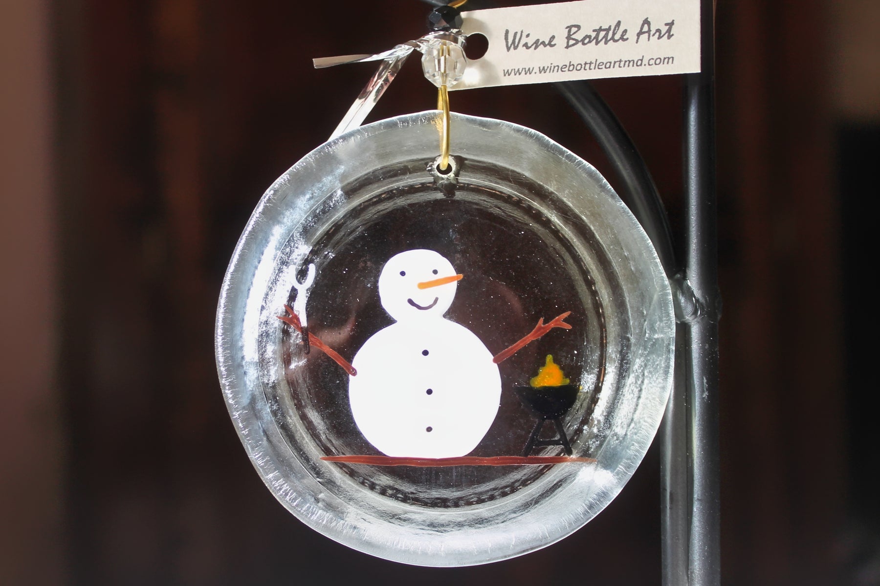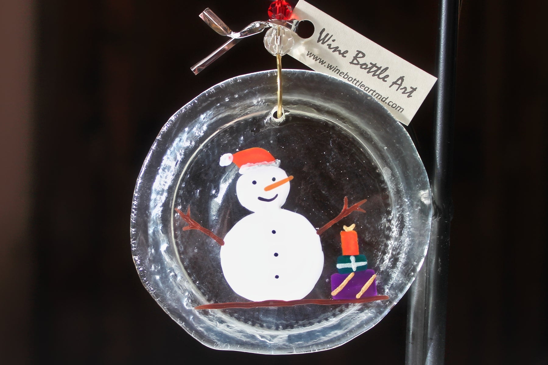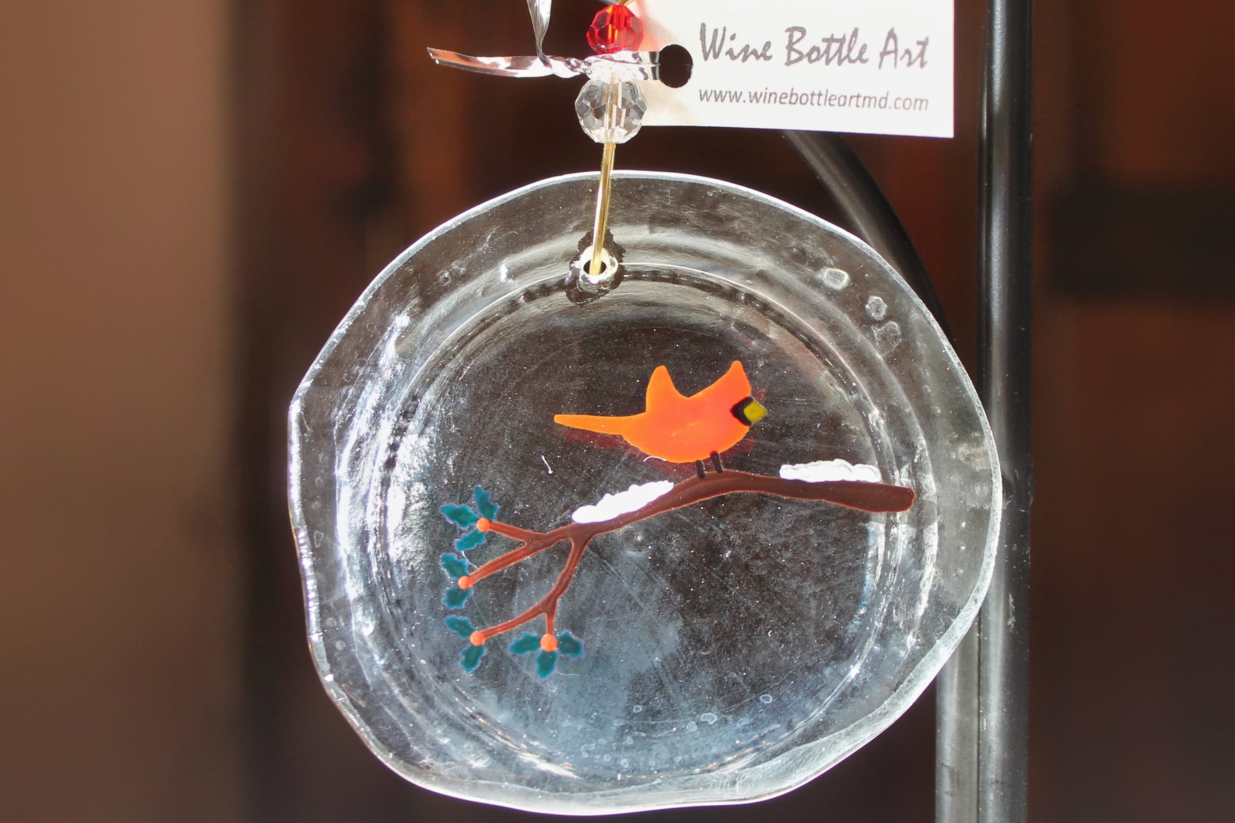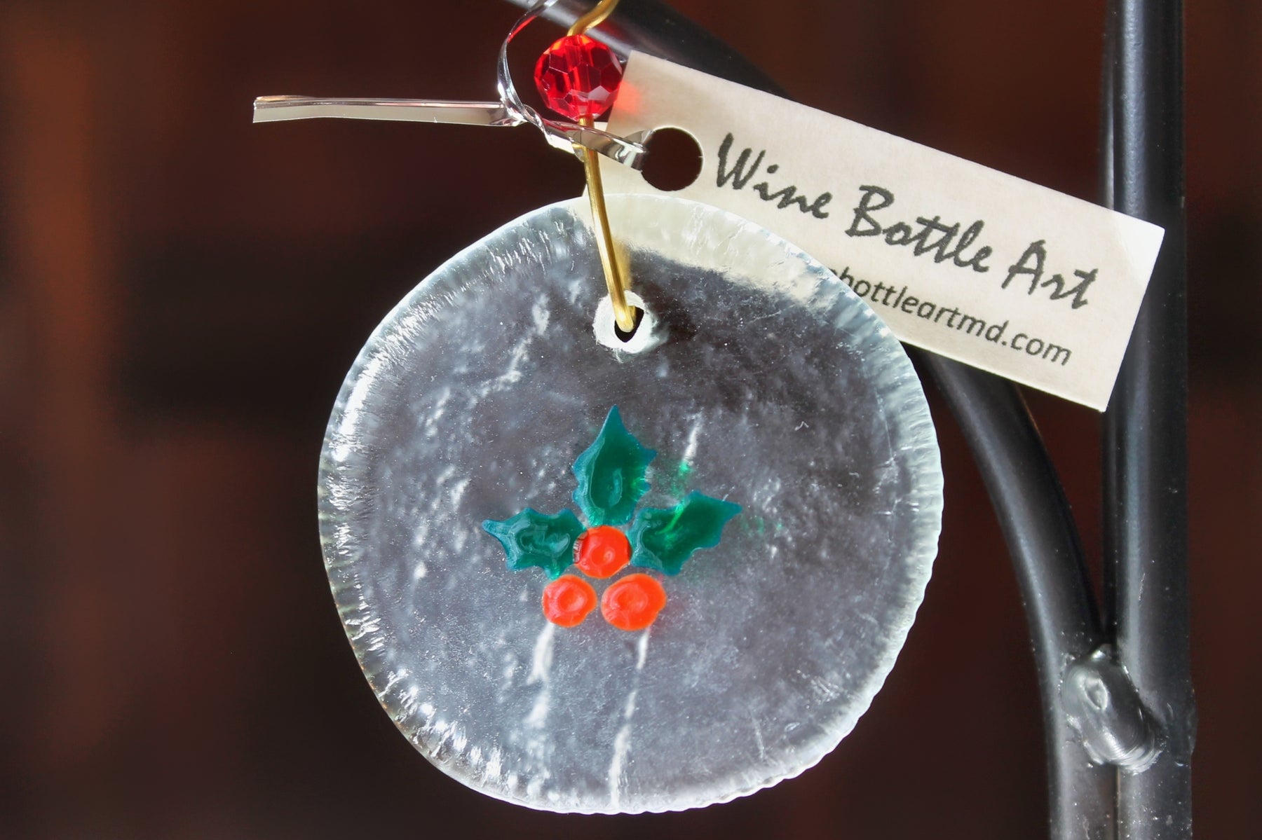 These Christmas and Holiday themed wine bottle suncatchers and ornaments were upcycled from the bottoms of recycled wine bottles. Each suncatcher is made by hand from 100% post-consumer glass wine bottles. Each hand cut ornament is a one of a kind because each bottle is unique. Hang it in your window and let the sunlight sparkle through.