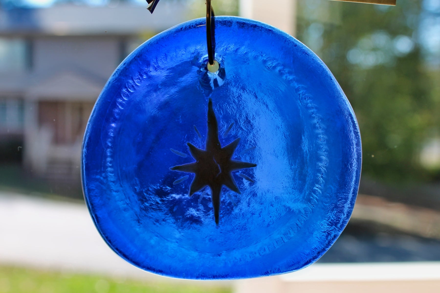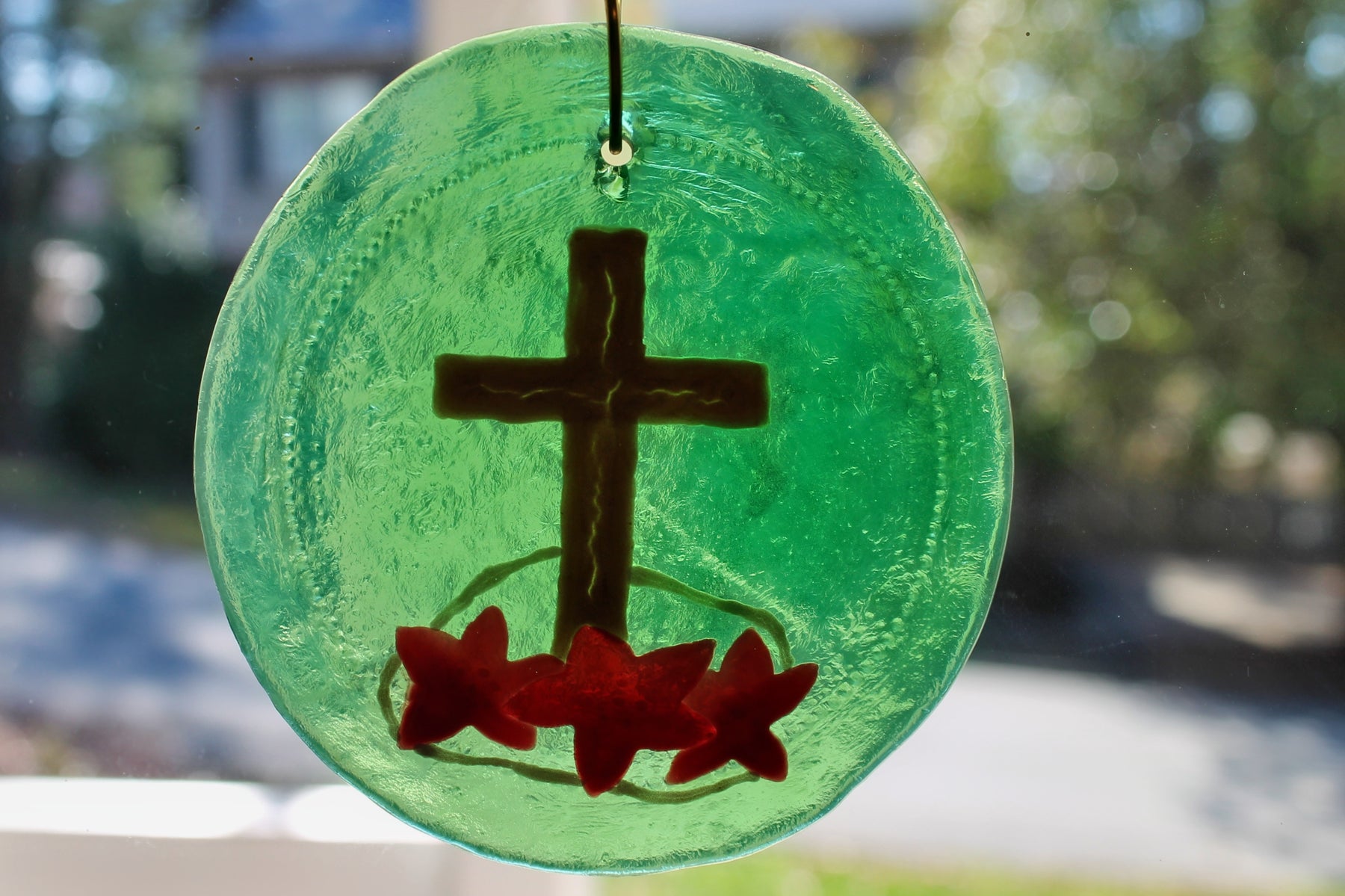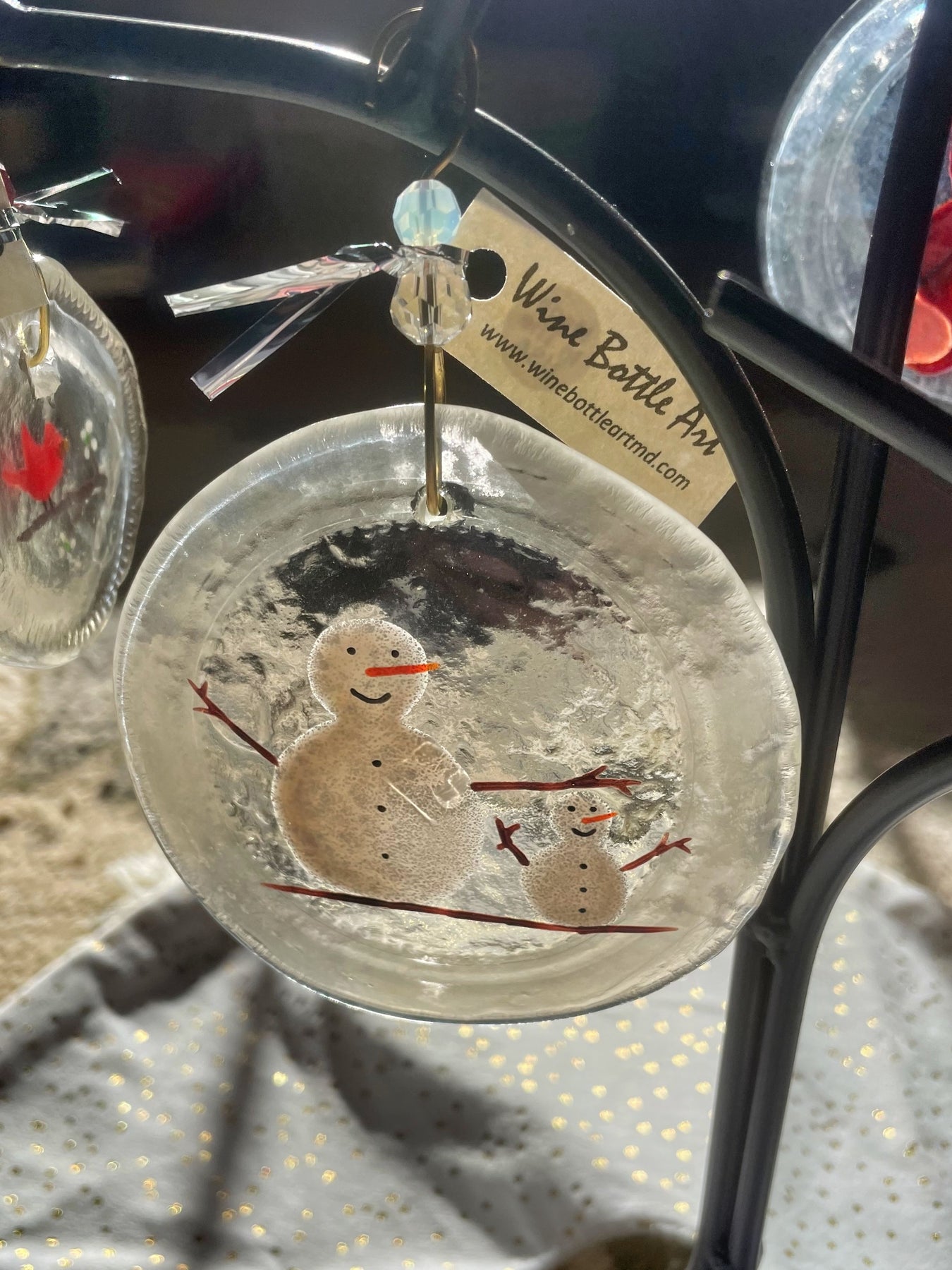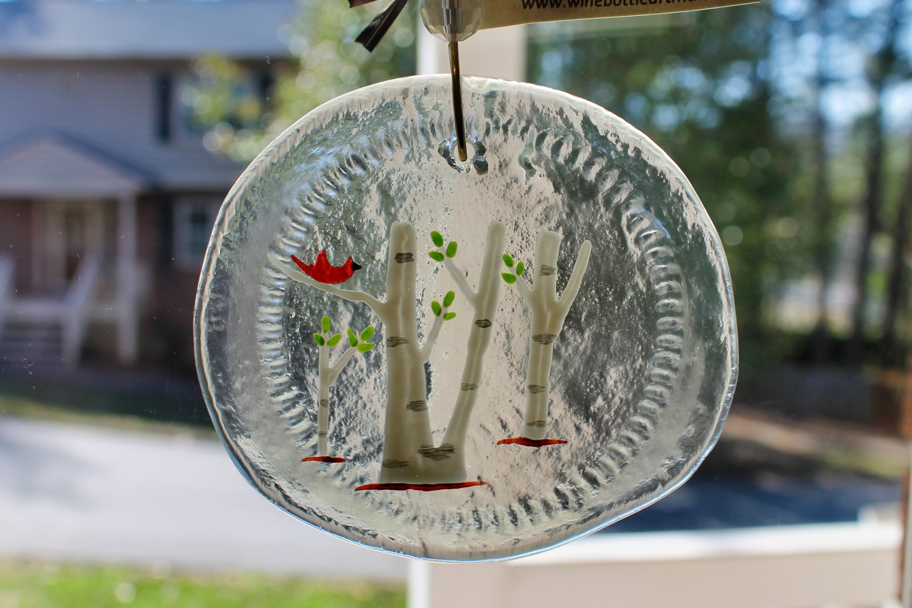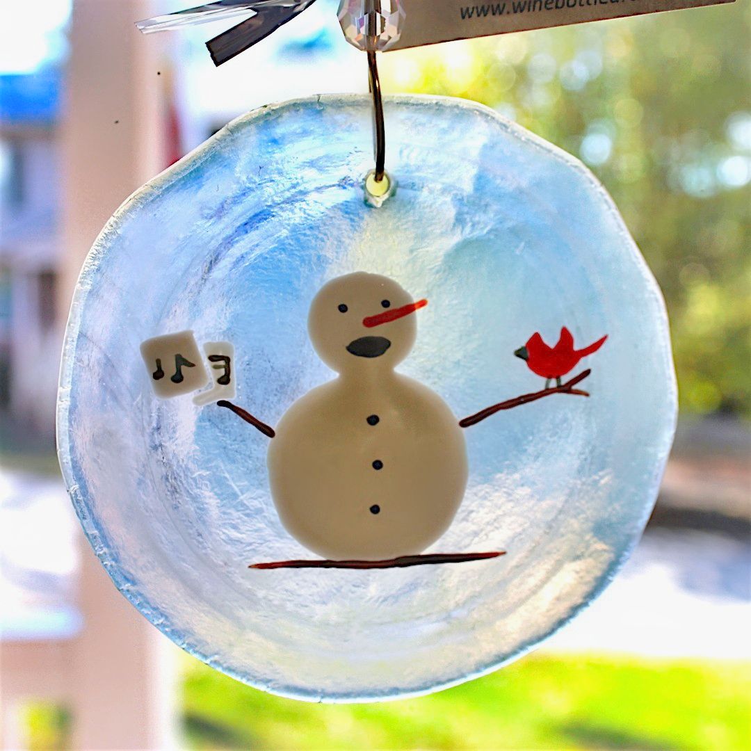 These Christmas and Holiday themed wine bottle suncatchers and ornaments were upcycled from the bottoms of recycled wine bottles. Each suncatcher is made by hand from 100% post-consumer glass wine bottles. Each hand cut ornament is a one of a kind because each bottle is unique. Hang it in your window and let the sunlight sparkle through.