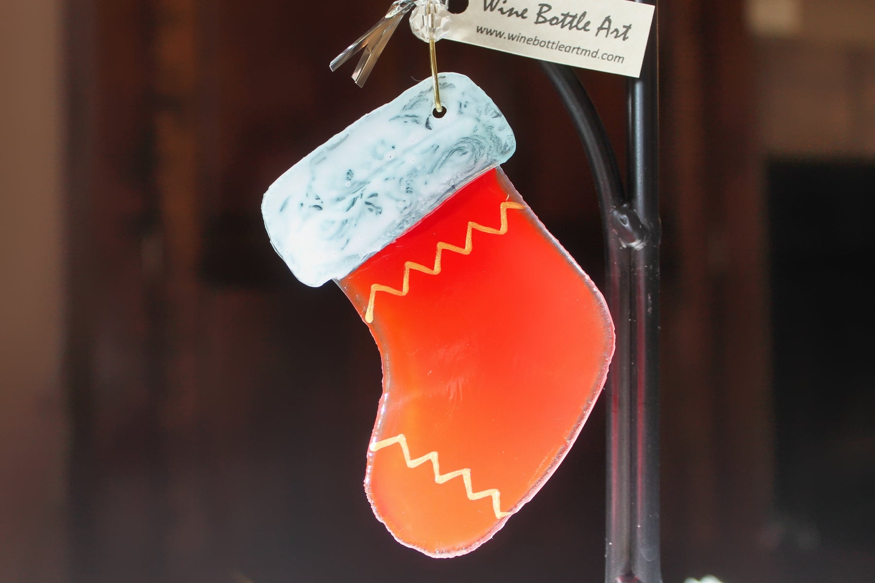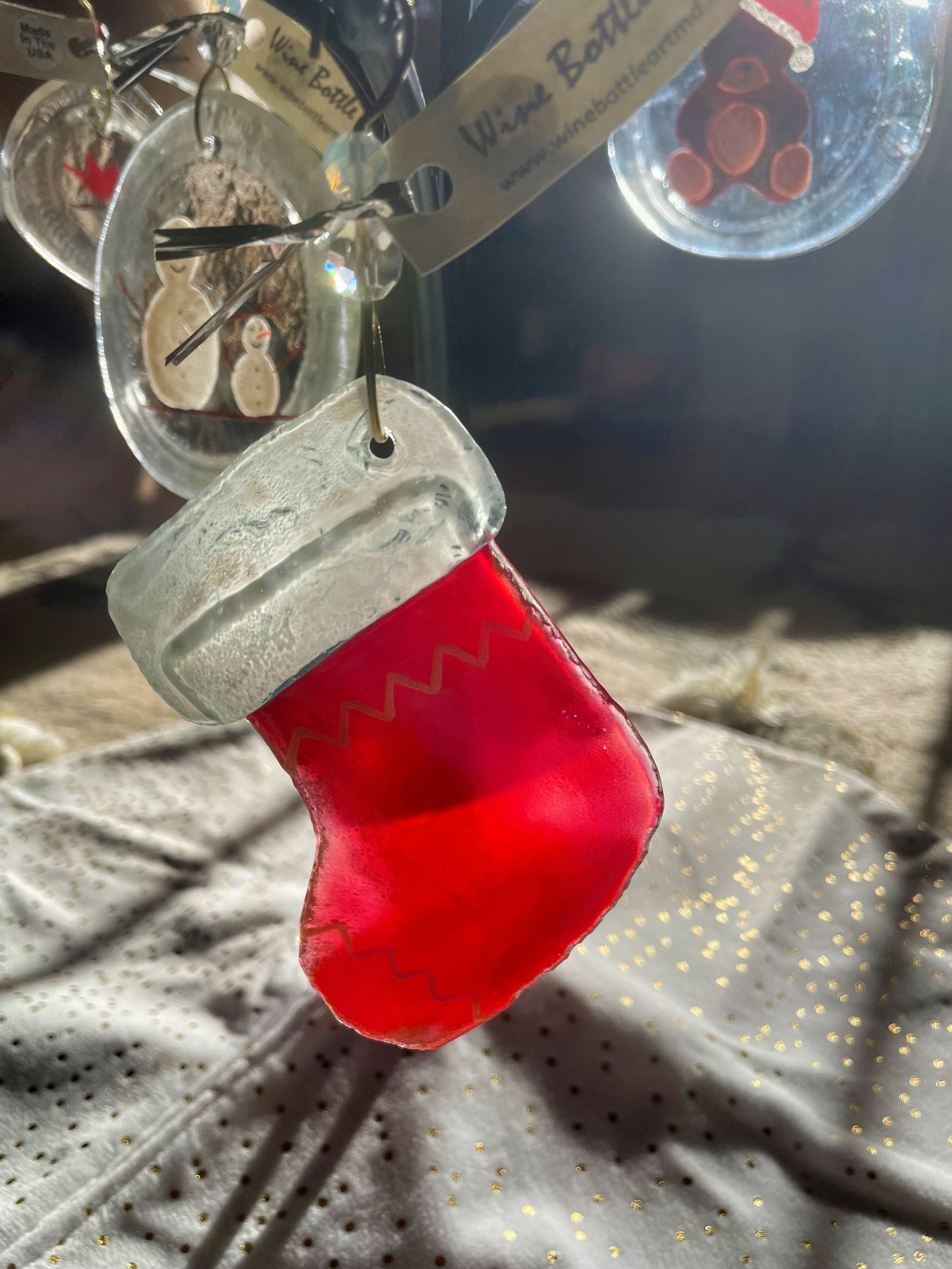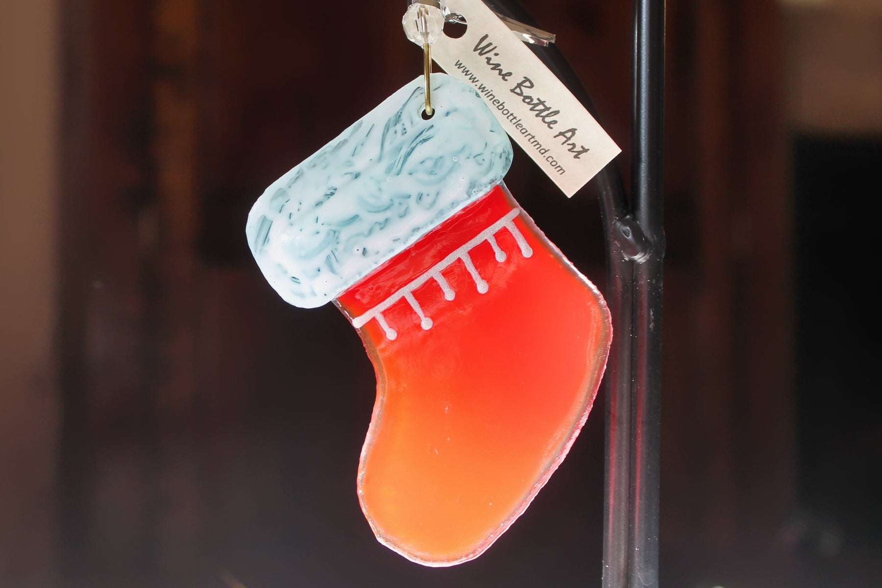 Wine Bottle Art Mini Christmas Ornament Suncatcher -Christmas stocking ornament.  Order today at harvestarray.com.