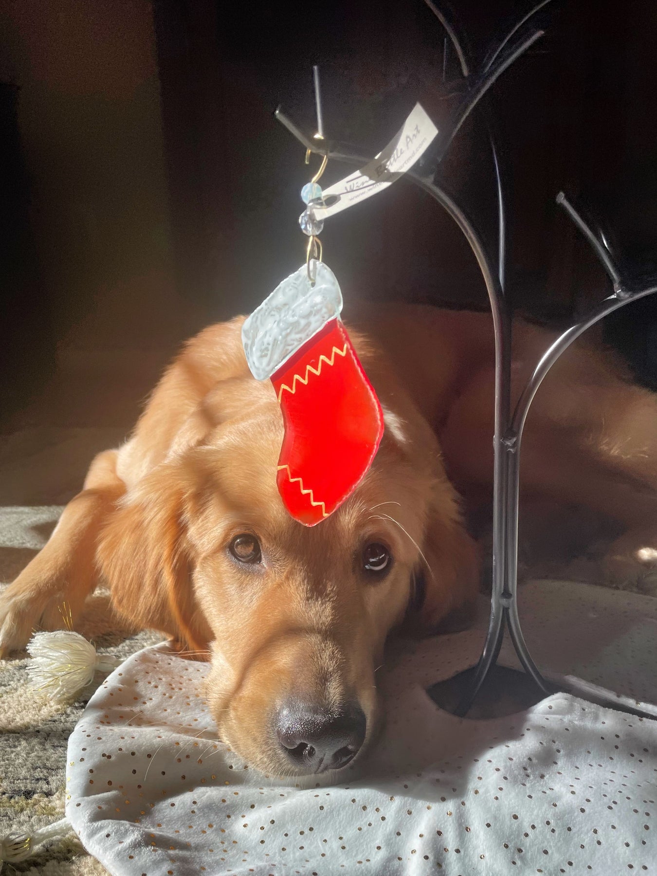 Geno with the Christmas Stocking Ornaments and Suncatchers