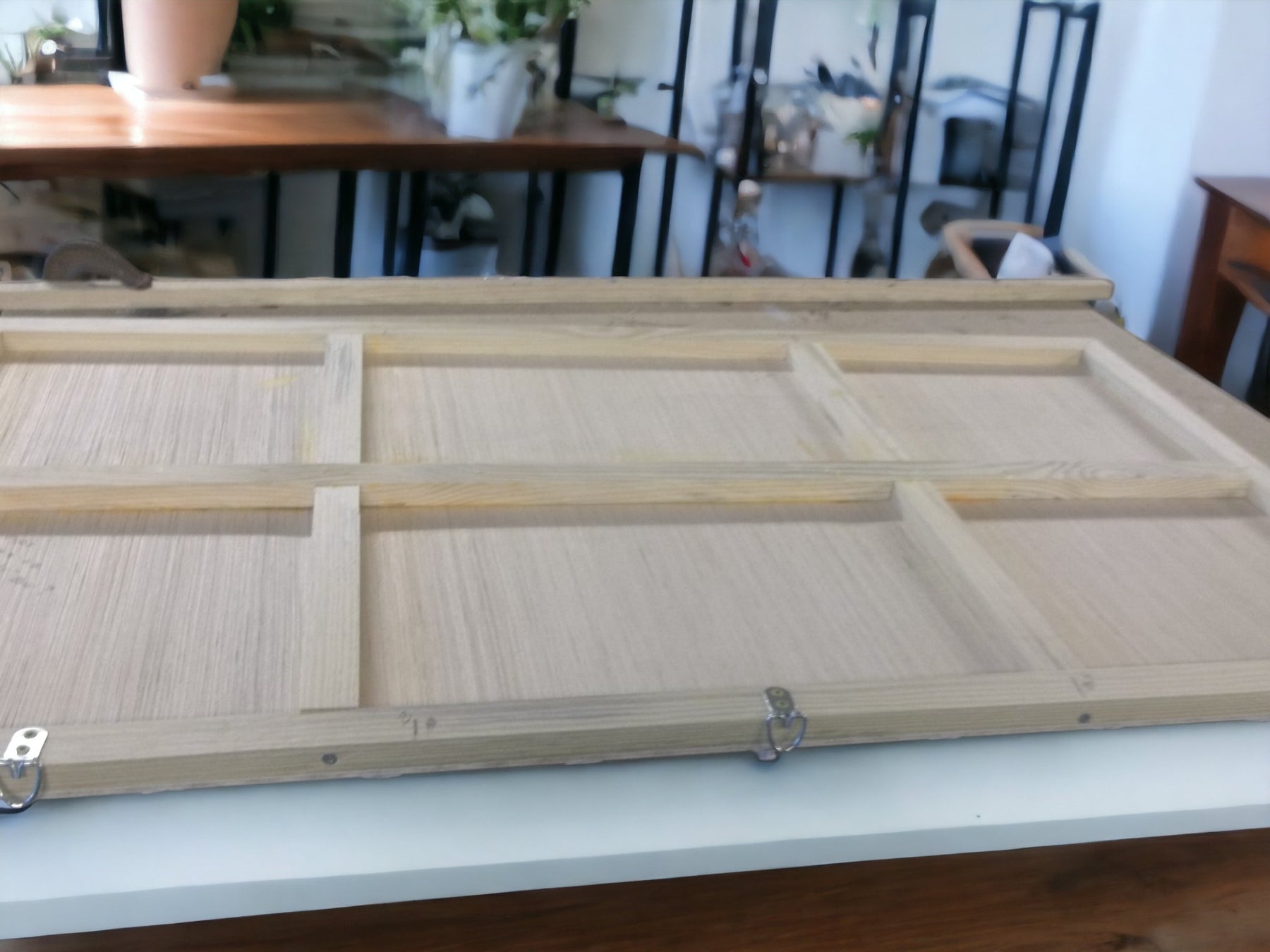 All joints are glued using waterproof wood glue. Strips are hot glued on using Hot Glue. Stronger angle joints are used on corners instead of weaker butt joints. Back brace is glued and screwed. Back of display is not painted