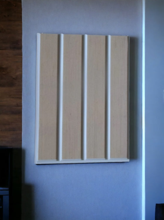 Each high quality display is custom made, you choose the number and width of columns up to 44" wide. Made of sturdy 0.25" wood panel, framed on the back by 1" wide sturdy pine wood, has at least two hangers (50-pound capacity) mounted to be hung on 16" center.