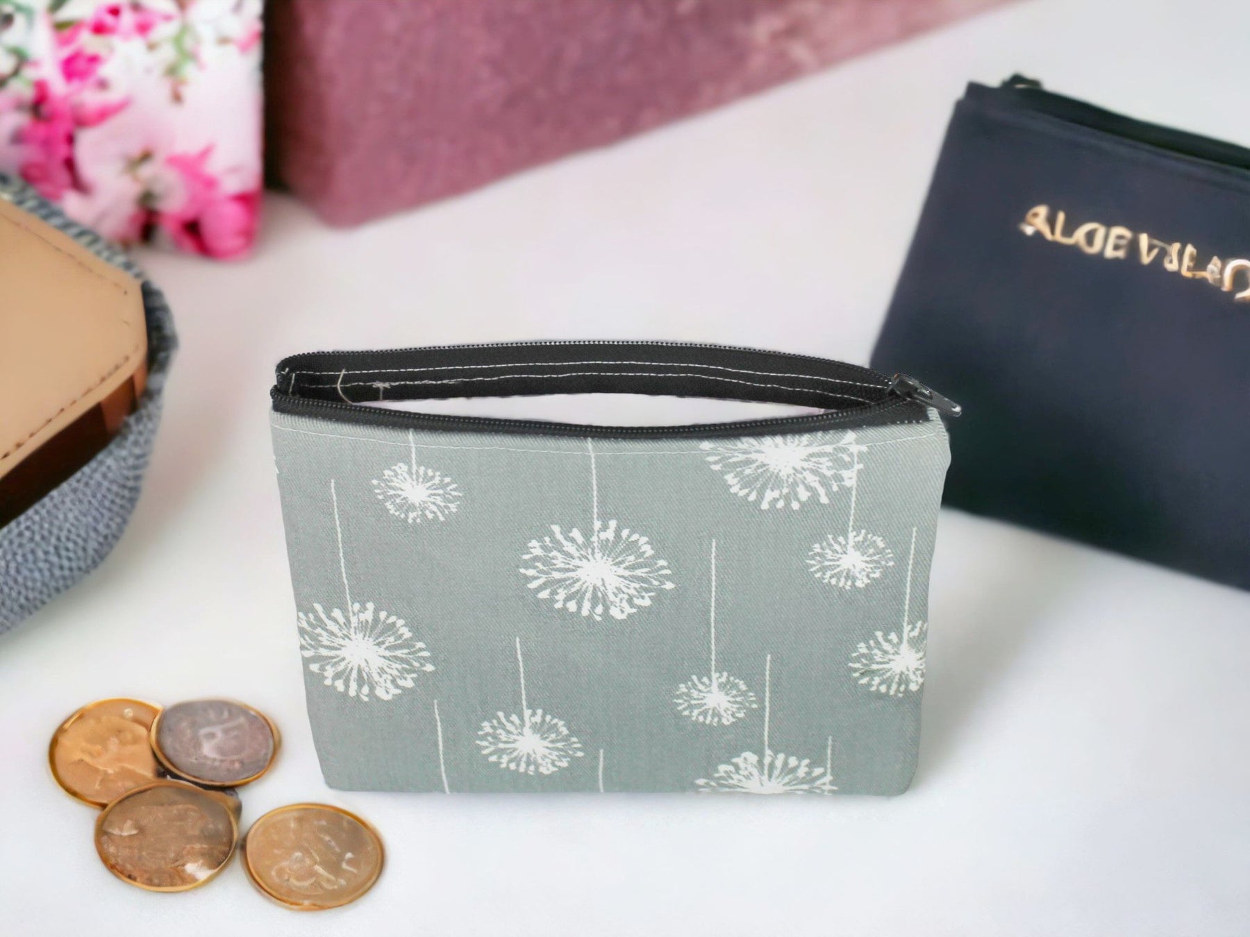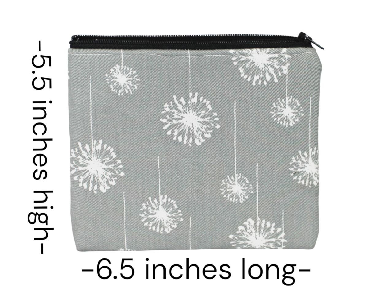 Handmade with care, this gray fabric with dandelion print coin purse is a true testament to our dedication to quality. Measuring just 6 1/2" in length and 5 1/2" in height, this small purse is the ideal size. Perfect for everyday use or a night out, this versatile accessory is a must-have item.