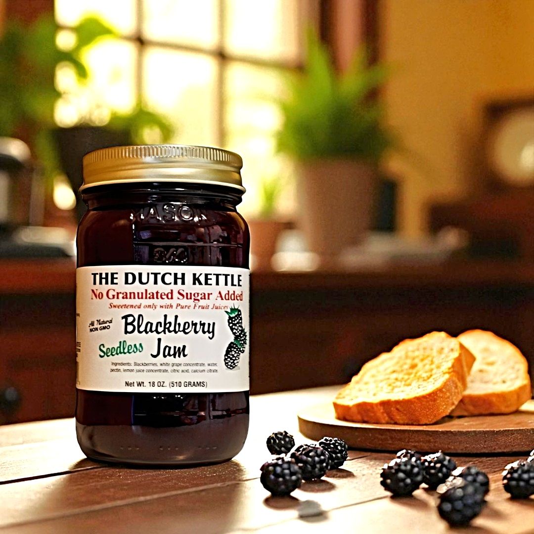 - Our Dutch Kettle Amish Homemade No Added Sugar Seedless Jams are shipped in a clear 18-oz jar. Each jar is individually packaged to ensure safe delivery.