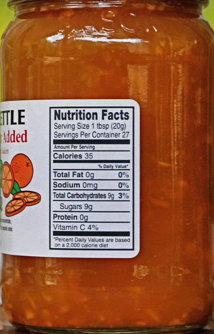 Ingredients for the Amish Made No Sugar Added Orange Marmalade