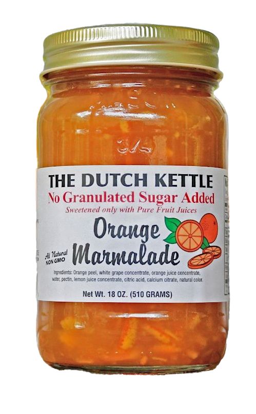 As with all our Dutch Kettle Jams, Jellies, and Fruit Butters, this No Granulated Sugar Added Orange Marmalades is made from the finest all-natural ingredients, contains no artificial colors, or flavors, no added granulated sugar, no preservatives, and is non-GMO.